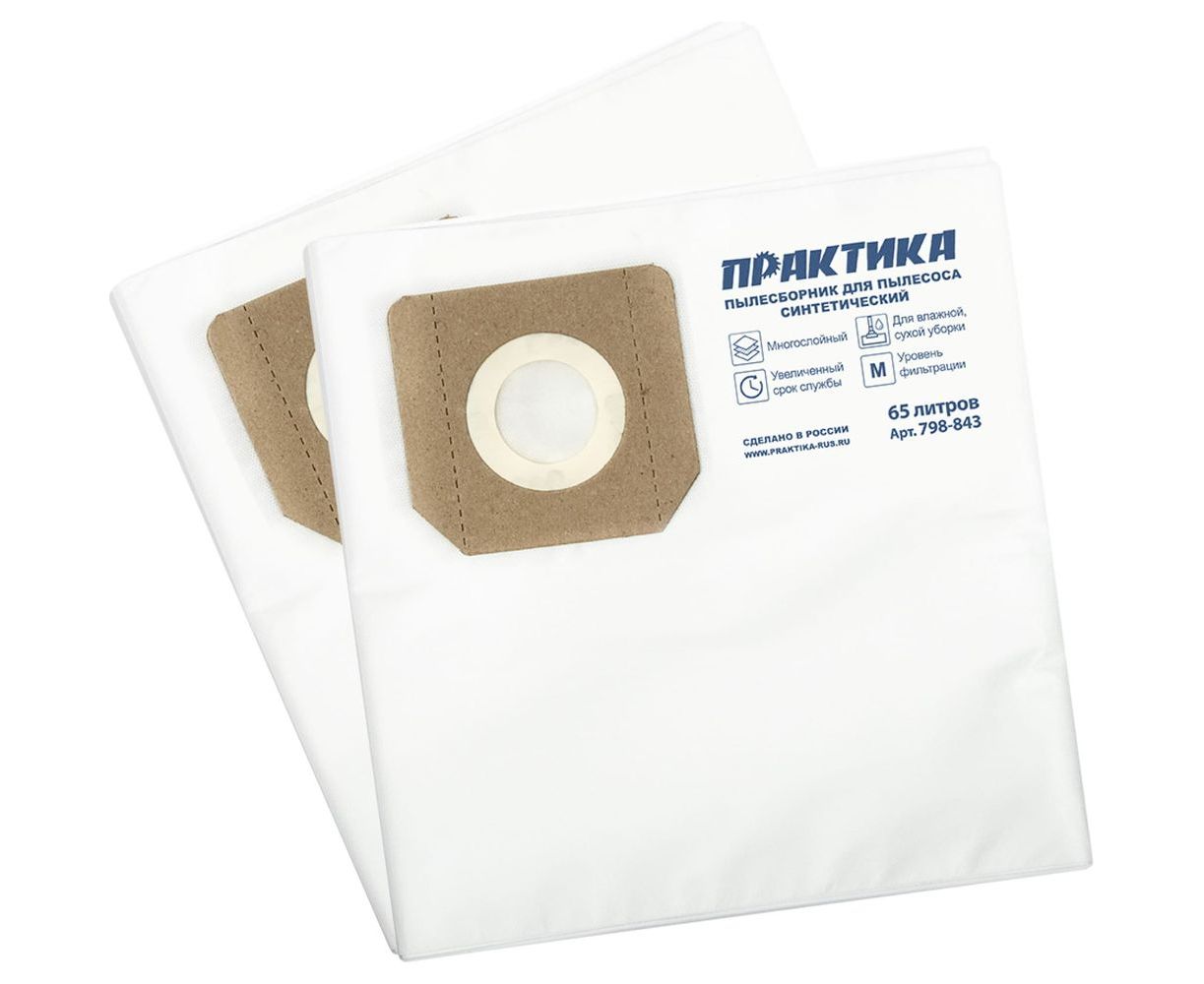 Мешки ПРАКТИКА 65 л, синтетич., 2 шт для пылесосов KARCHER, FUBAG, HILTI, MESSER, MILWAUKEE, КРАТОН, ЭНКОР 798-843