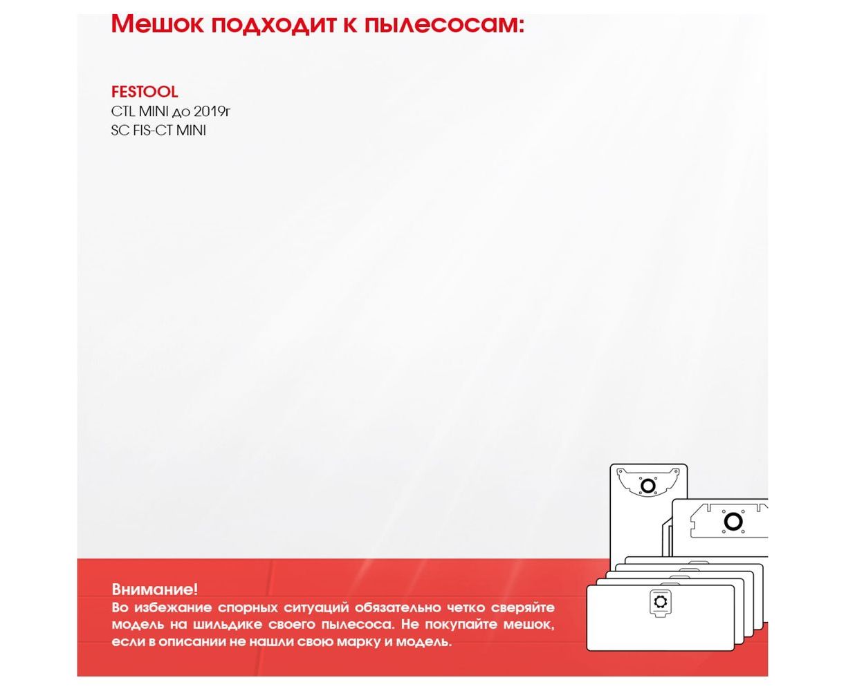 Мешок для пылесоса Festool CTL MINI до 2019г, многоразовый, класса L, до 12 л ROCKSTAR ZIP-FP1