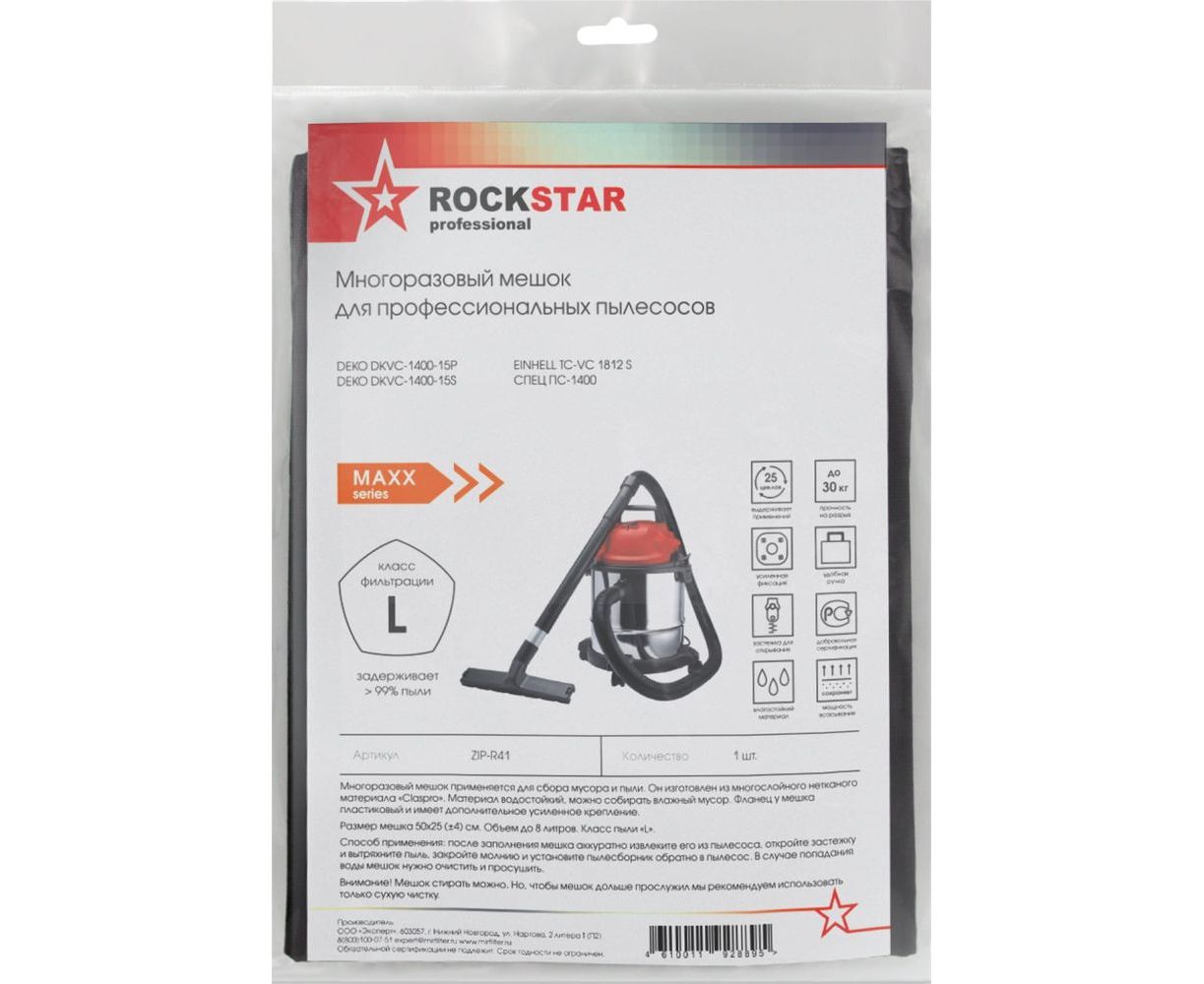 Мешок для Спец ПС-1400, Deko DKVC1400-15, Einhell TC 1812, многоразовый класс L, 8 л ROCKSTAR ZIP-R41