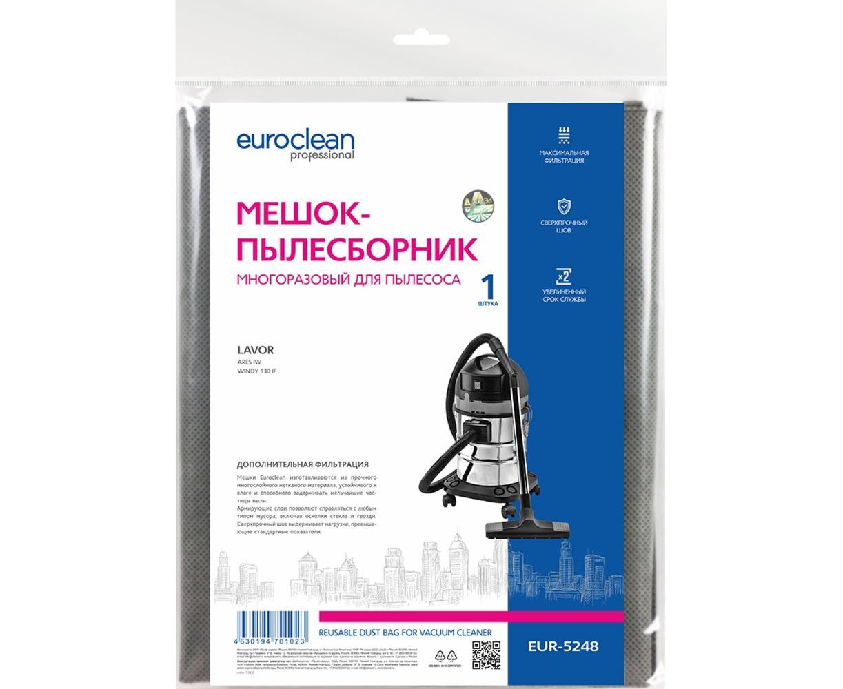 Многоразовый мешок синтетический с текстильной застежкой для пылесоса LAVOR ARES IW, WINDY 130 IF EURO Clean EUR-5248