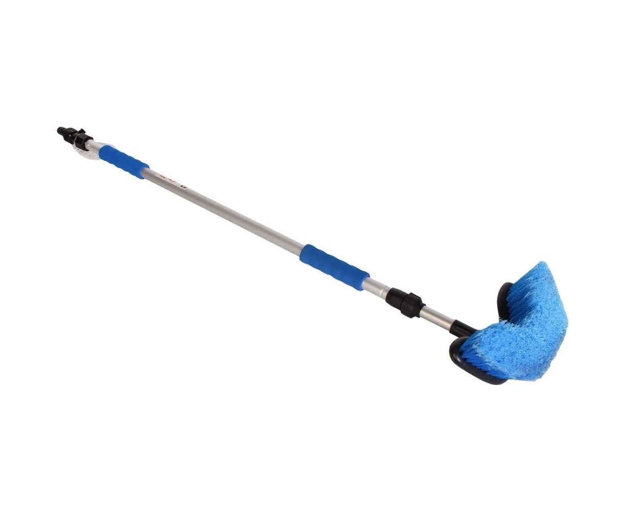 Телескопическая щетка предназначена для мойки автомобилей, окон, помещений. Мягкая распушенная щетина бережно очищает поверхность, не повреждая ее. Телескопическая рукоять позволяет дотянуться до самых труднодоступных мест. Возможность подключения щетки к воде и наличие клапана для регулировки потока воды обеспечивает эффективную и комфортную мойку. Мягкие накладки на рукоятке служат для удобного хвата.