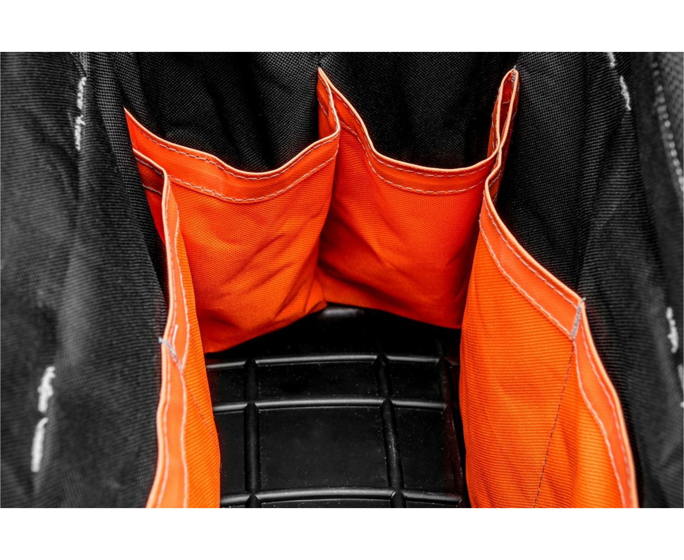 Сумка для инструмента NEO 84-305 выполнена из нейлона 600D и имеет пластиковое упрочненное дно, что гарантирует длительный срок службы. Сумка имеет 8 внутренних и 14 наружных карманов, крепление для уровня и дополнительный карабин с кольцом. Регулируемый плечевой ремень с мягкой накладкой способствует удобной транспортировке сумки.