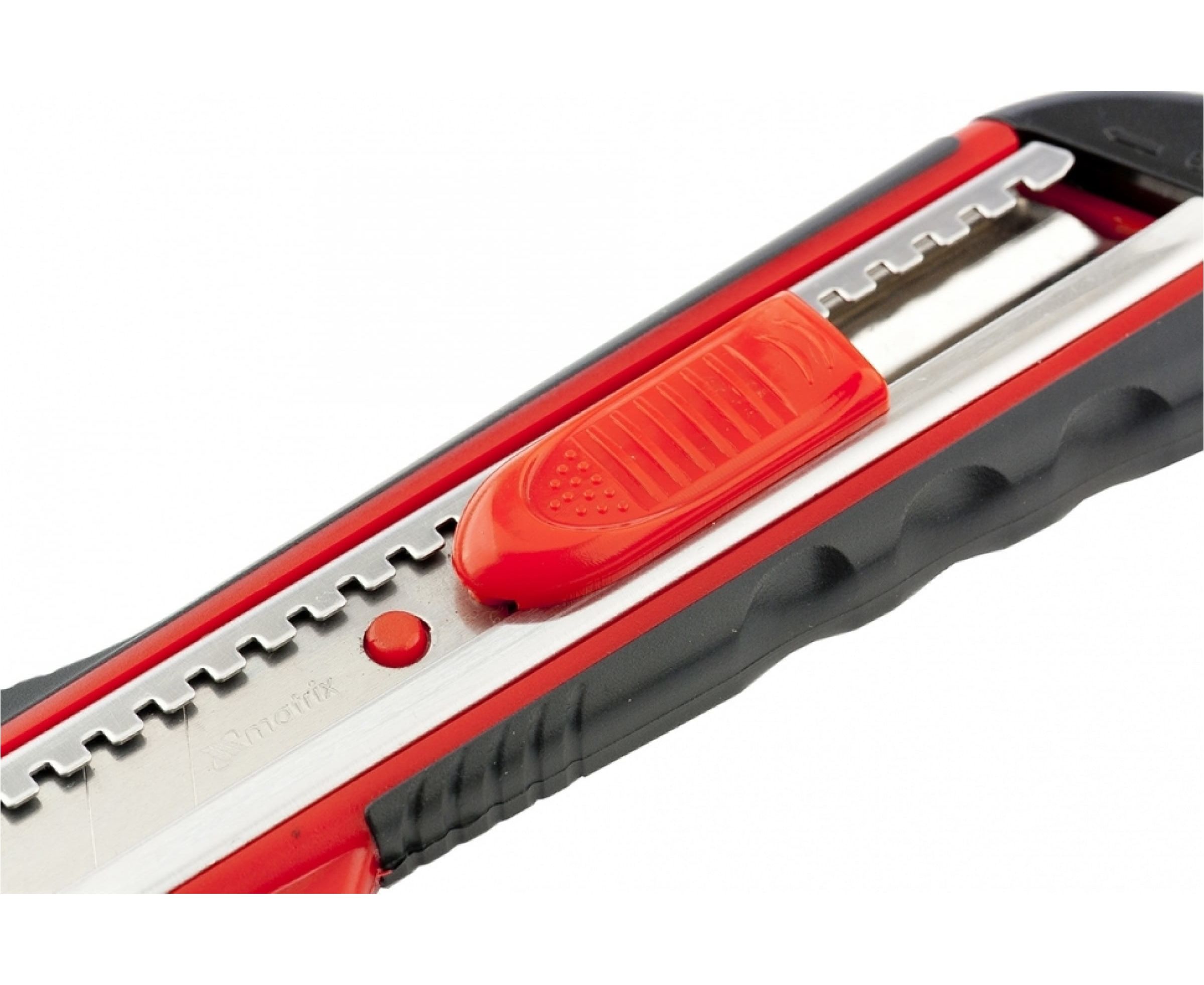 Нож 18мм, выдвижное лезвие, металлическая направляющая, эргономичная двухкомпонентная рукоятка MATRIX 78933
