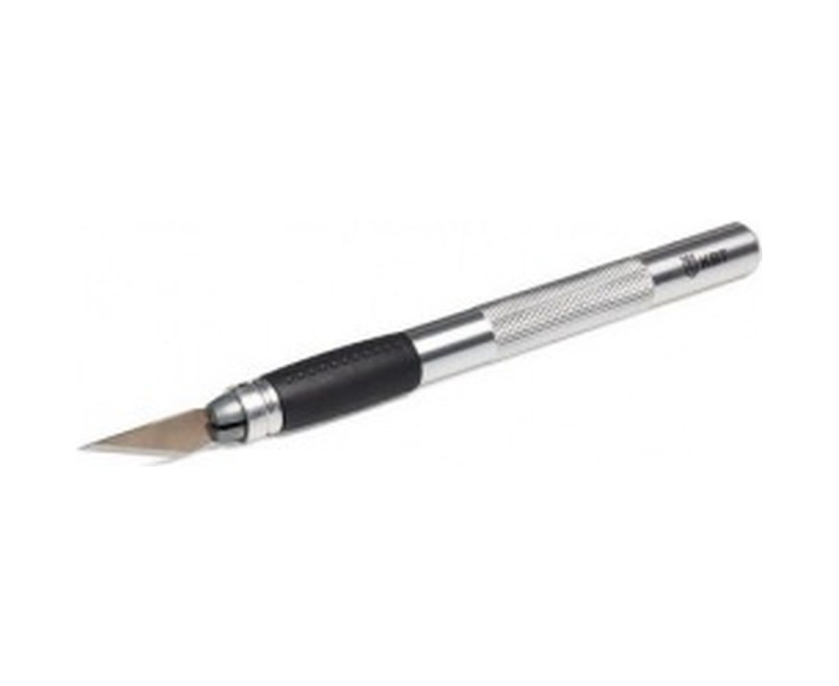 Нож моделиста КВТ НСМ-04 78494 используется для аккуратной и быстрой резки картона, ткани, резиновых или пластиковых заготовок, кожи в сфере художественных работ. Корпус выполнен из металла и оснащен специальной нескользящей вставкой для удобства пользователя. Накатка на рукоятке также предотвращает проскальзывание инструмента в руке.