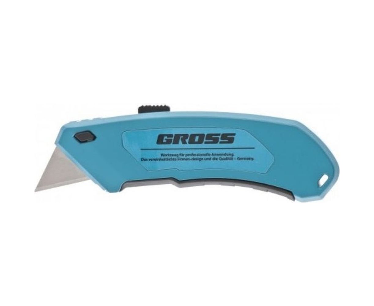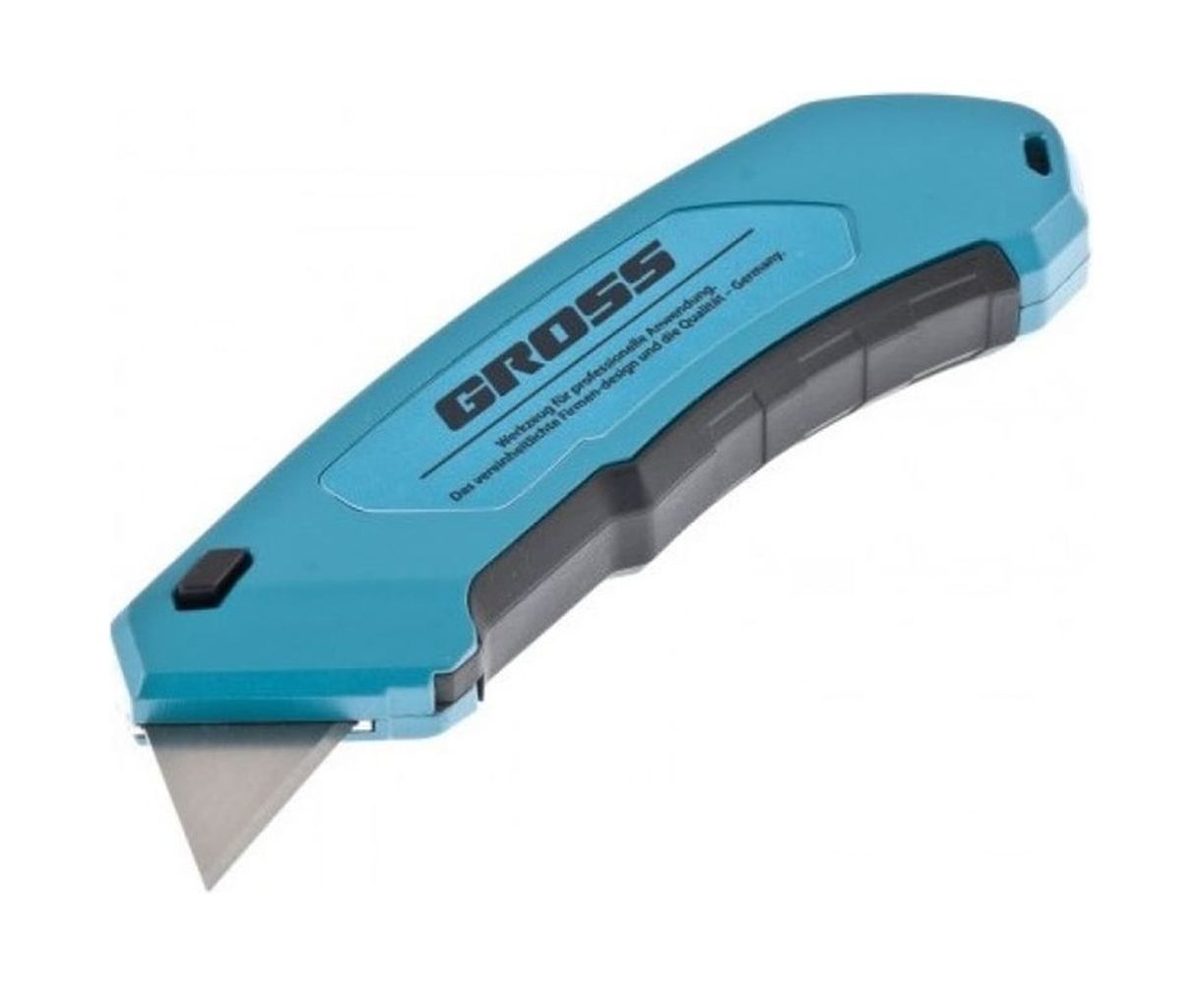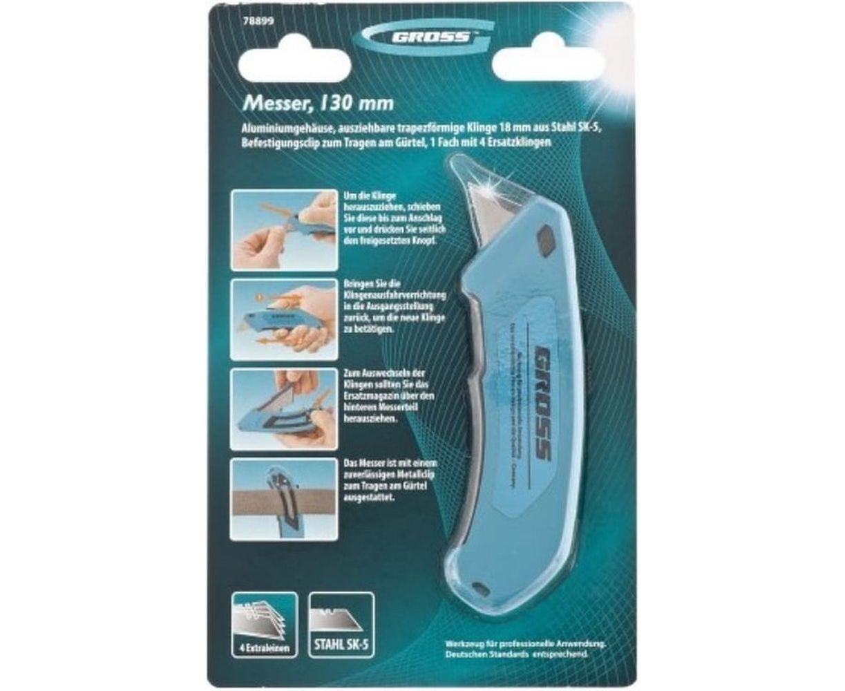 Нож 130 мм, алюминиевый корпус, выдвижное трапецевидное лезвие 18 мм GROSS 78899