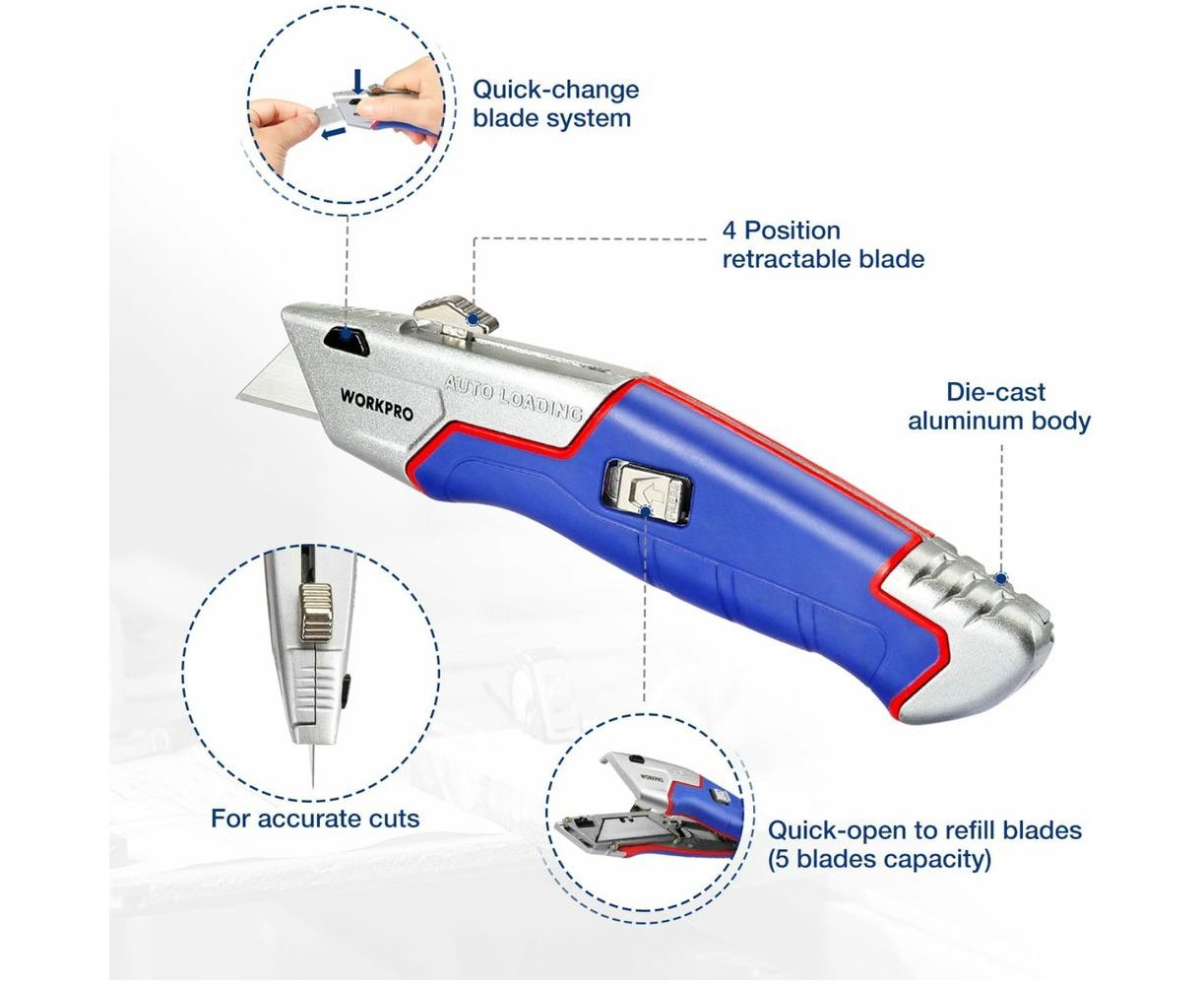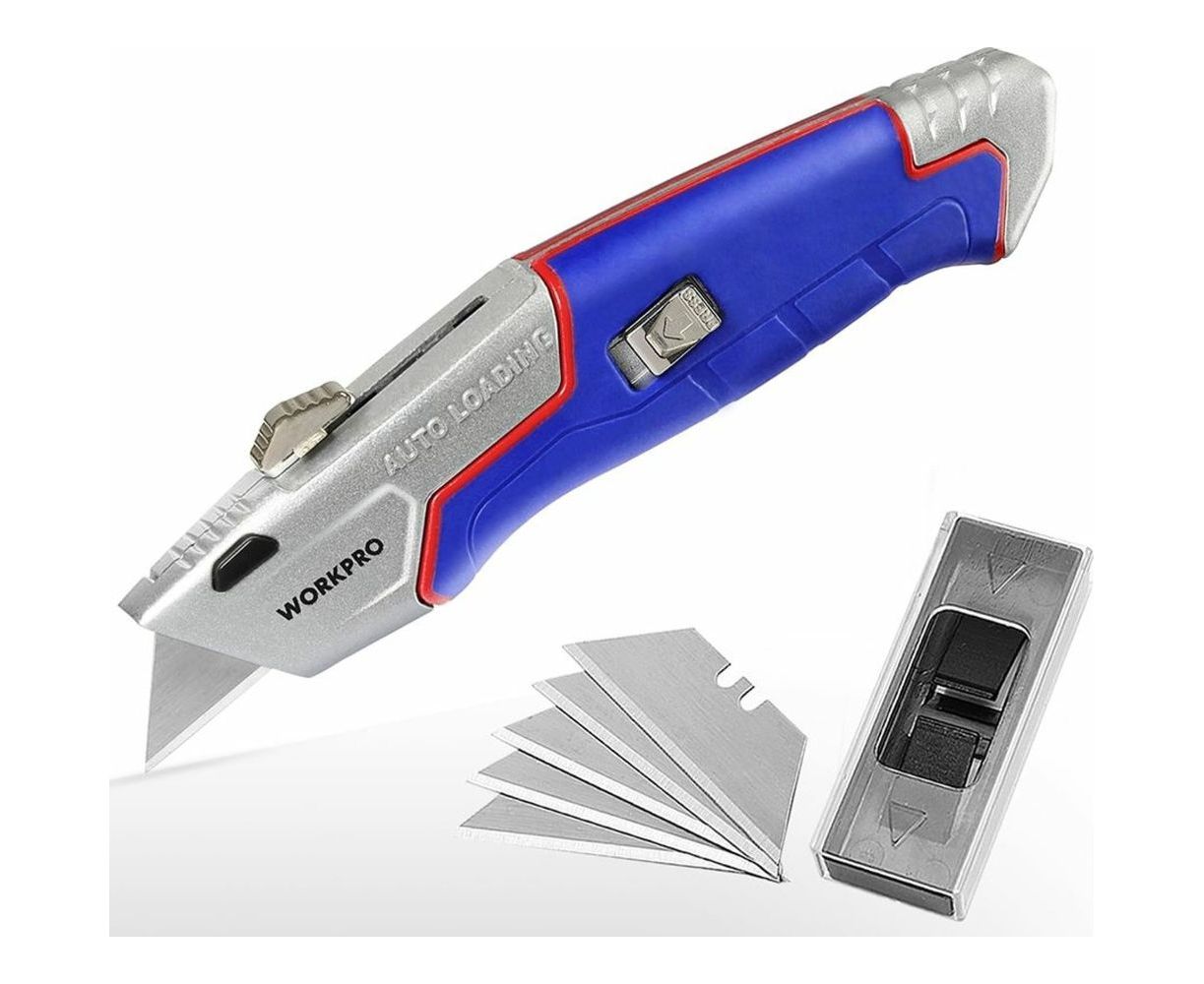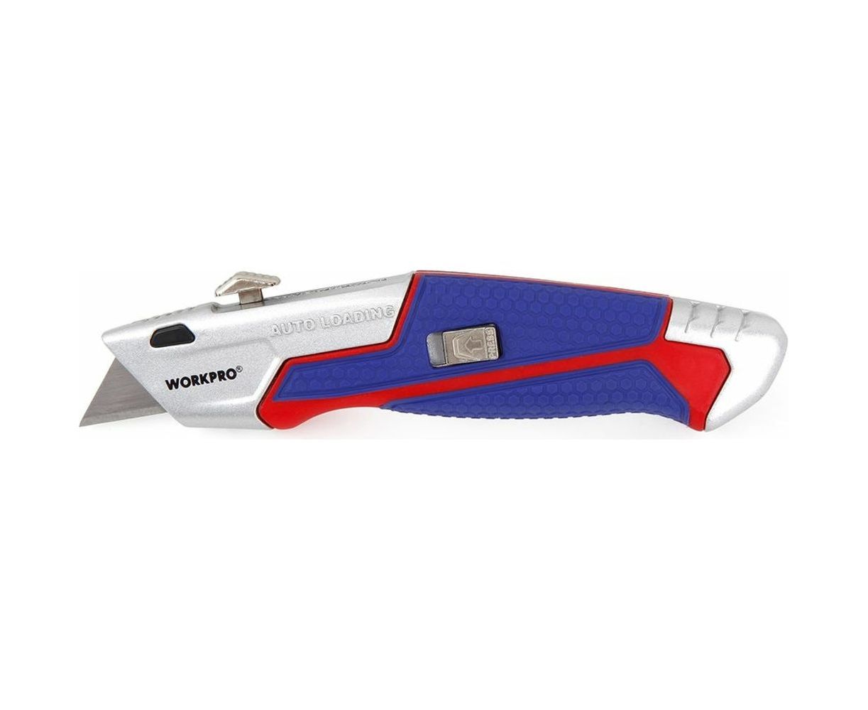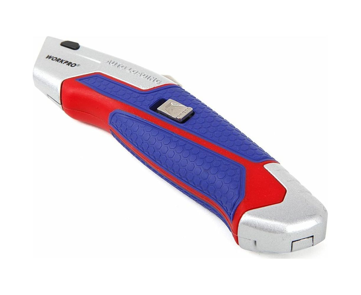 Строительный нож WORKPRO выдвижной, с автоматической подачей, 5 лезвий, трапециевидные лезвия WP213012