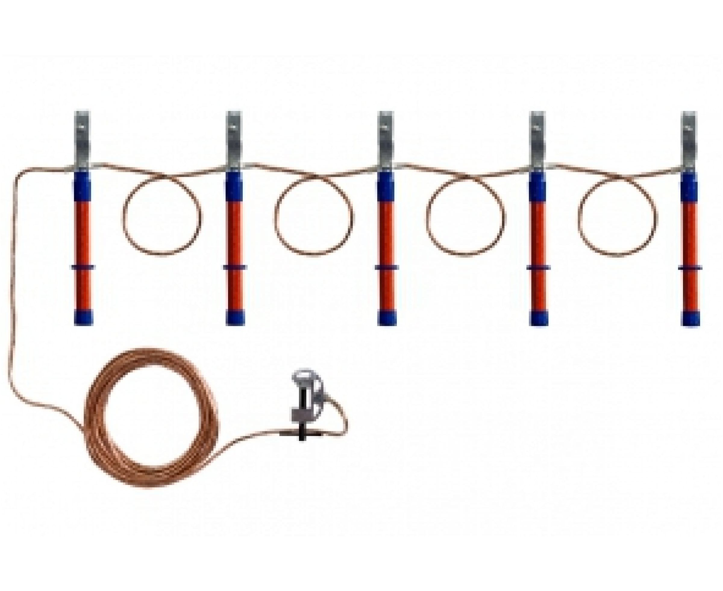 - 5-ти пружинных или литых (методом пултрузии) винтовых зажимов из алюминиевого сплава для закрепления их на токоведущих частях и струбцины для присоединения к заземляющим проводникам;