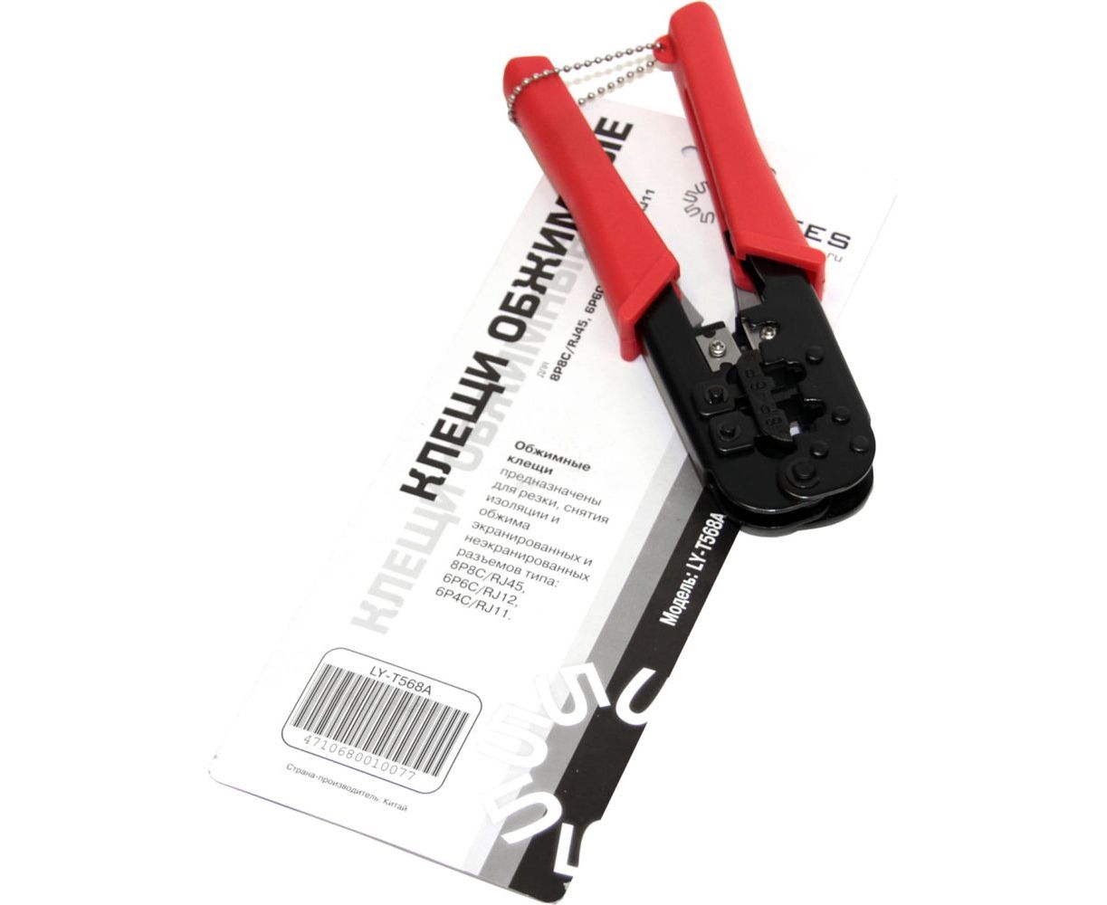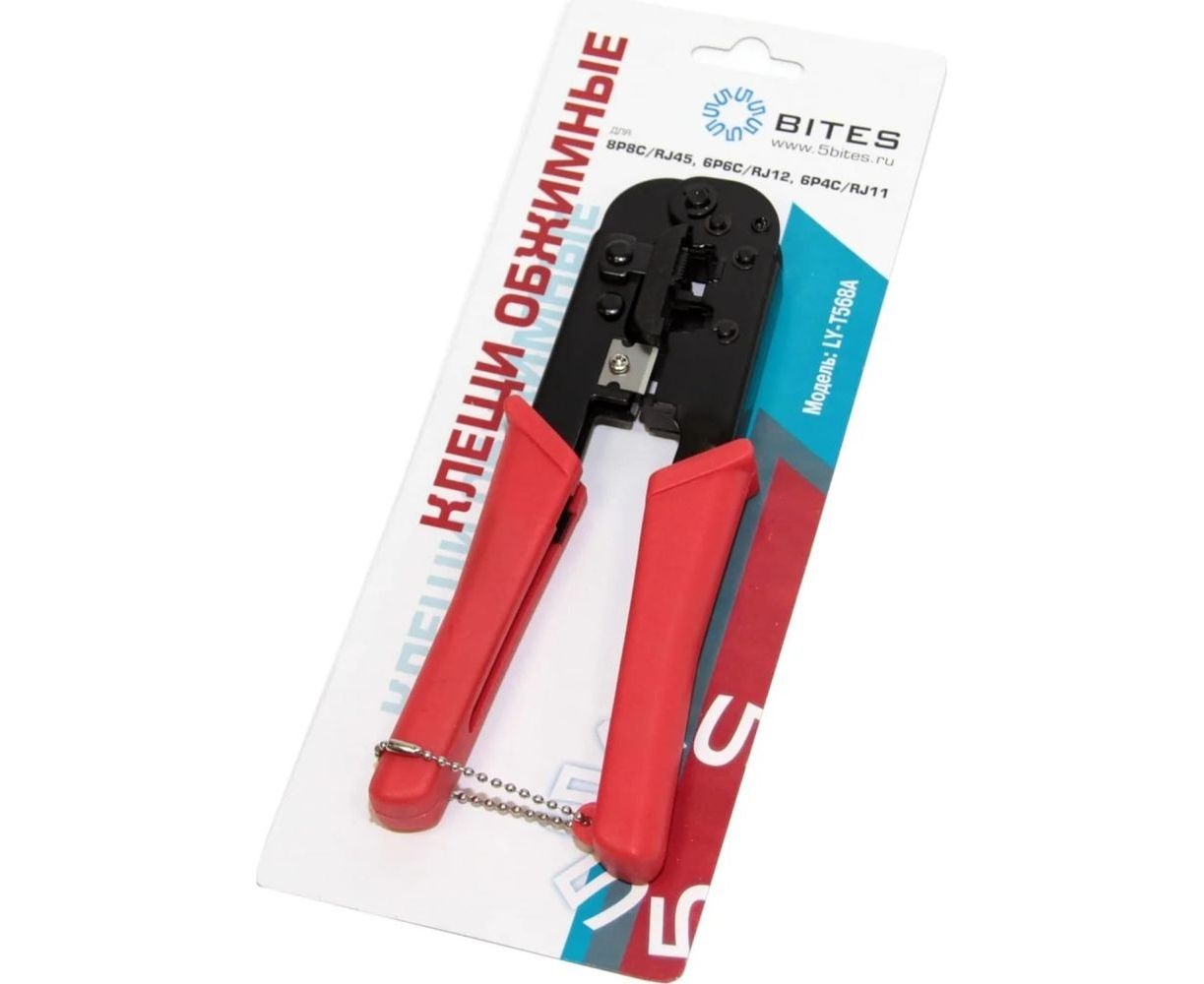 Обжимные клещи 5bites для коннекторов RJ-45 RJ-12/11 с фикс. и зачистки витой пары LY-T568A предназначены для резки, снятия изоляции и обжима экранированных и неэкранированных разъемов различного типа. Для обжима витой пары рекомендуем использовать только специальный предназначенный для этой работы инструмент