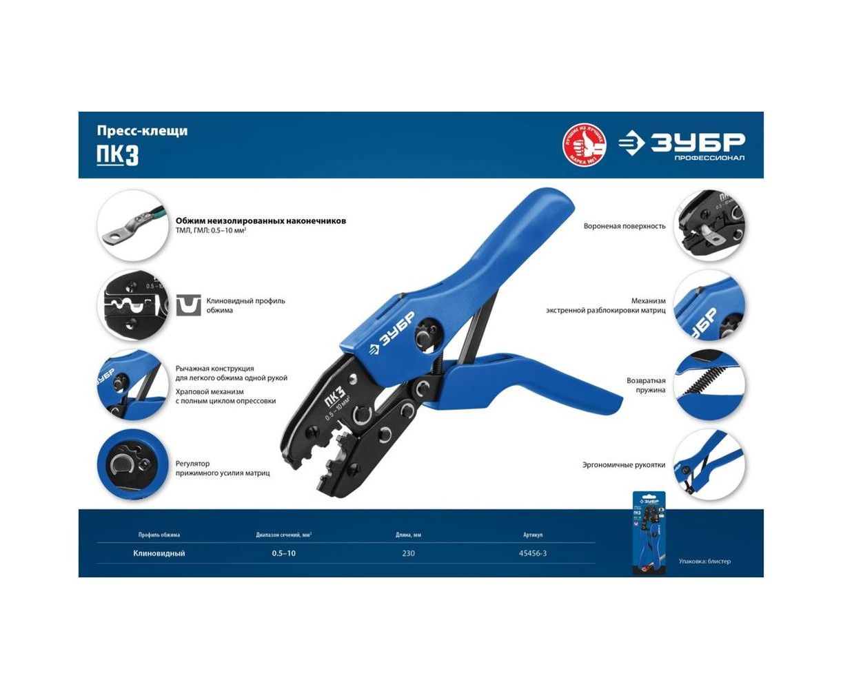 Пресс-клещи для медных наконечников ЗУБР Профессионал ПК-3 0.5 -10 мм.кв 45456-3