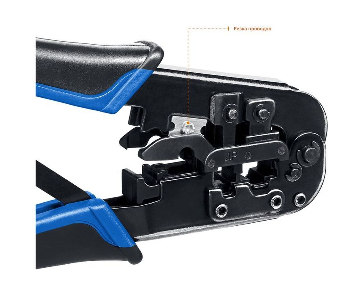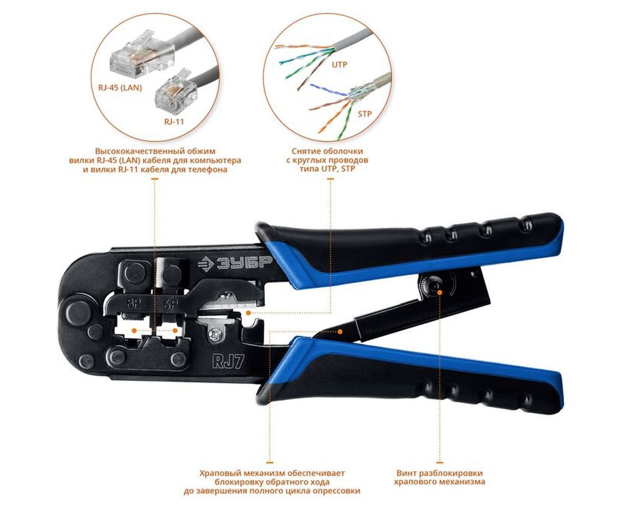 Универсальный кримпер ПРОФ Зубр 22650 оснащен храповым механизмом, который позволяет эффективно распределять усилие в процессе обжима.