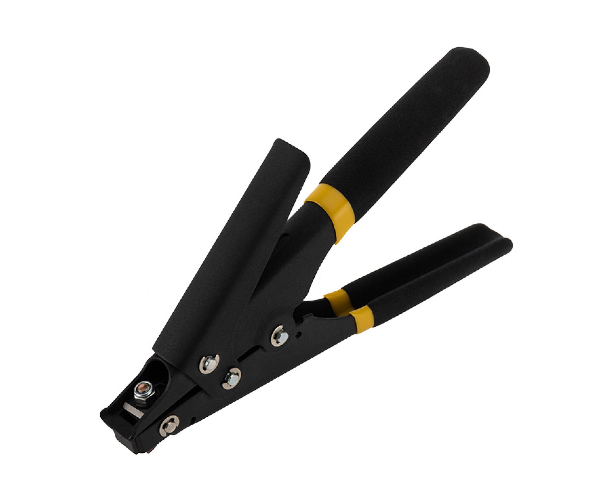 Конструкция позволяет быстро и легко монтировать даже самую широкую стяжку: одним сведением ручек затягивать хомут и обрезать излишки полотна нажатием на дополнительный рычаг.