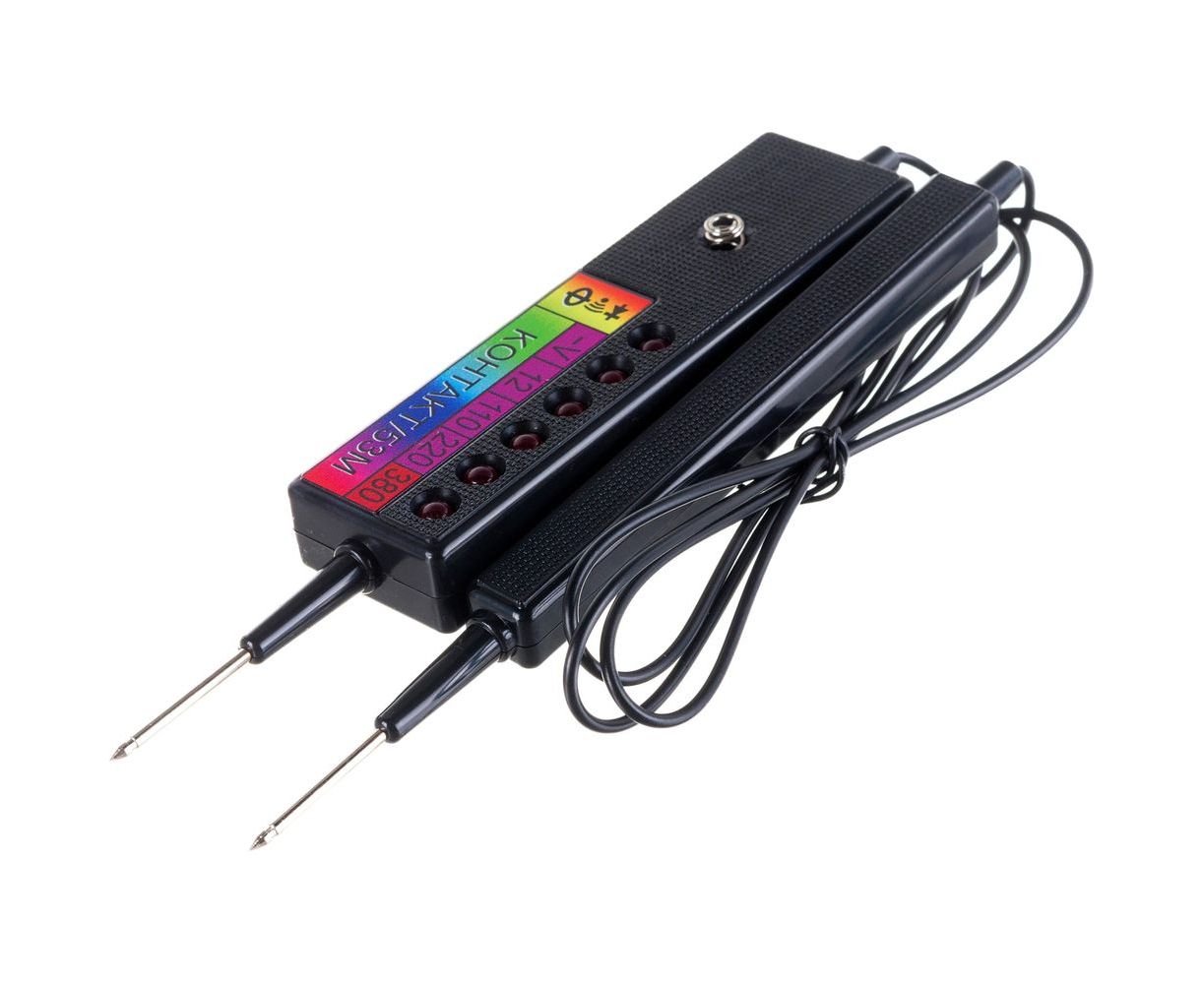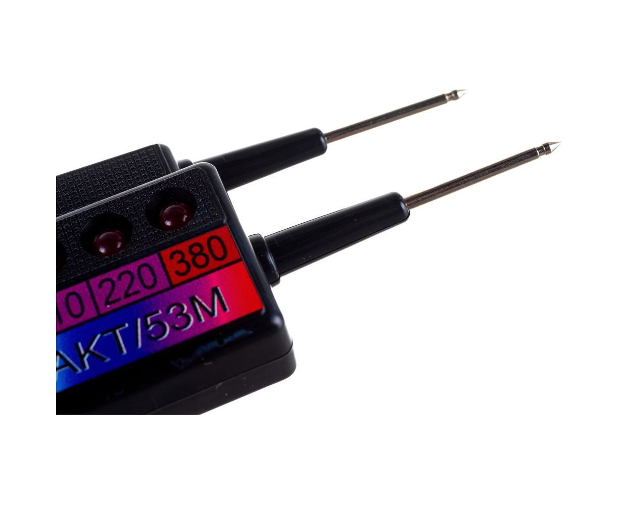 Указатель напряжения WHDZ Контакт 53М предназначен для определения ориентировочной величины напряжения тока, полярности постоянного тока, прозвона цепей, в том числе обмоток электродвигателей, пускателей, трансформаторов, контакторов, проверки исправности диодов, тиристоров, транзисторов и определения фазного провода в цепях переменного тока.
