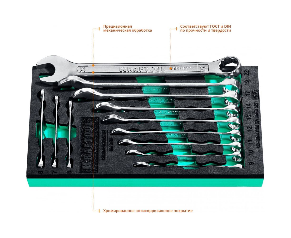 Набор комбинированных гаечных ключей Kraftool 27079-H12E незаменимый помощник в любой автомастерской. Представлен в оптимальной комплектации с широким размерным рядом.