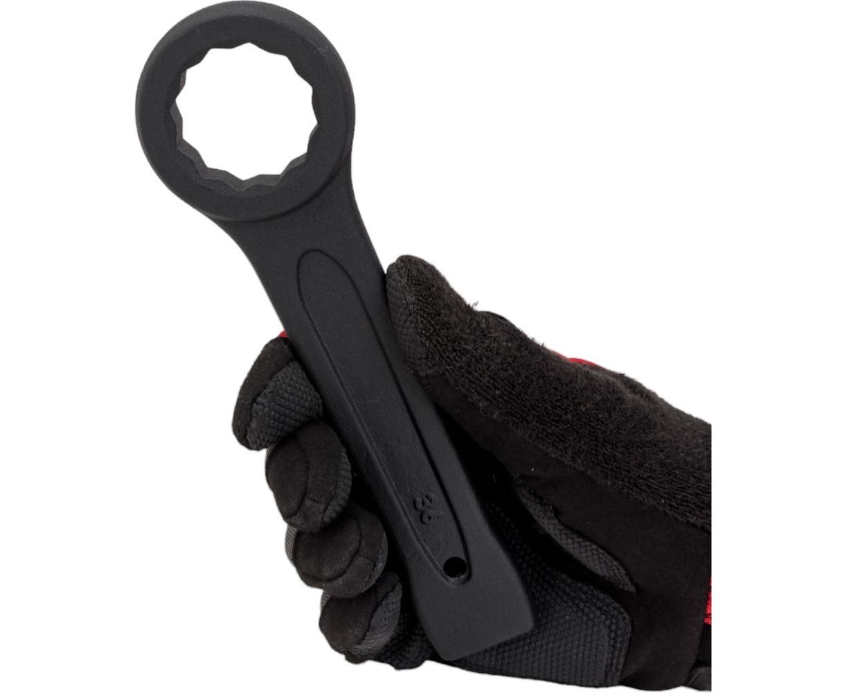 Гаечный ключ BIST накидной ударный 36 мм BCT3310-36 имеет высокую прочность. Благодаря дополнительной ударной площадке инструмент можно использовать с молотком или небольшой кувалдой. Служит для демонтажа приржавевшего крепежа. Позволяет стронуть его с места без повреждения резьбы. Все зоны дополнительно усилены и не деформируются при вращении ключа.