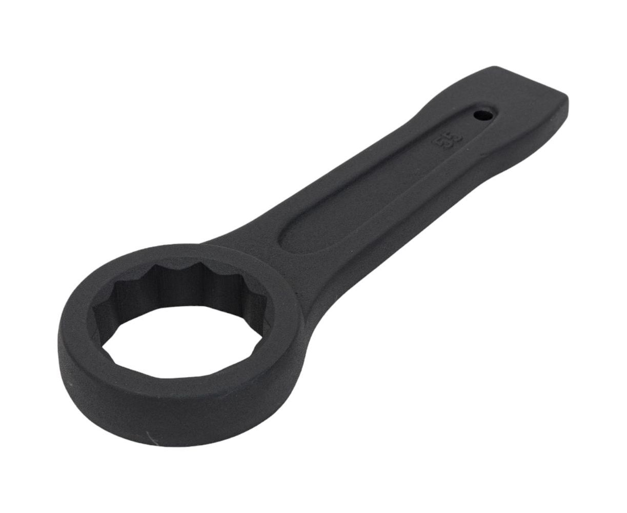 Гаечный ключ BIST накидной ударный 55 мм BCT3310-55 имеет высокую прочность. Благодаря дополнительной ударной площадке инструмент можно использовать с молотком или небольшой кувалдой. Служит для демонтажа приржавевшего крепежа. Позволяет стронуть его с места без повреждения резьбы. Все зоны дополнительно усилены и не деформируются при вращении ключа.