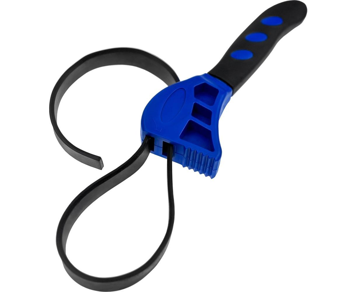 Ключ предназначен для ослабления или затягивания масляных фильтров, а так же пробок заливных горловин подкапотного пространства. В быту удобное решение при монтаже труб из различных материалов, открывания и крепления шлангов, открывания банок и т.д. Длина рукояти - 200 мм.
