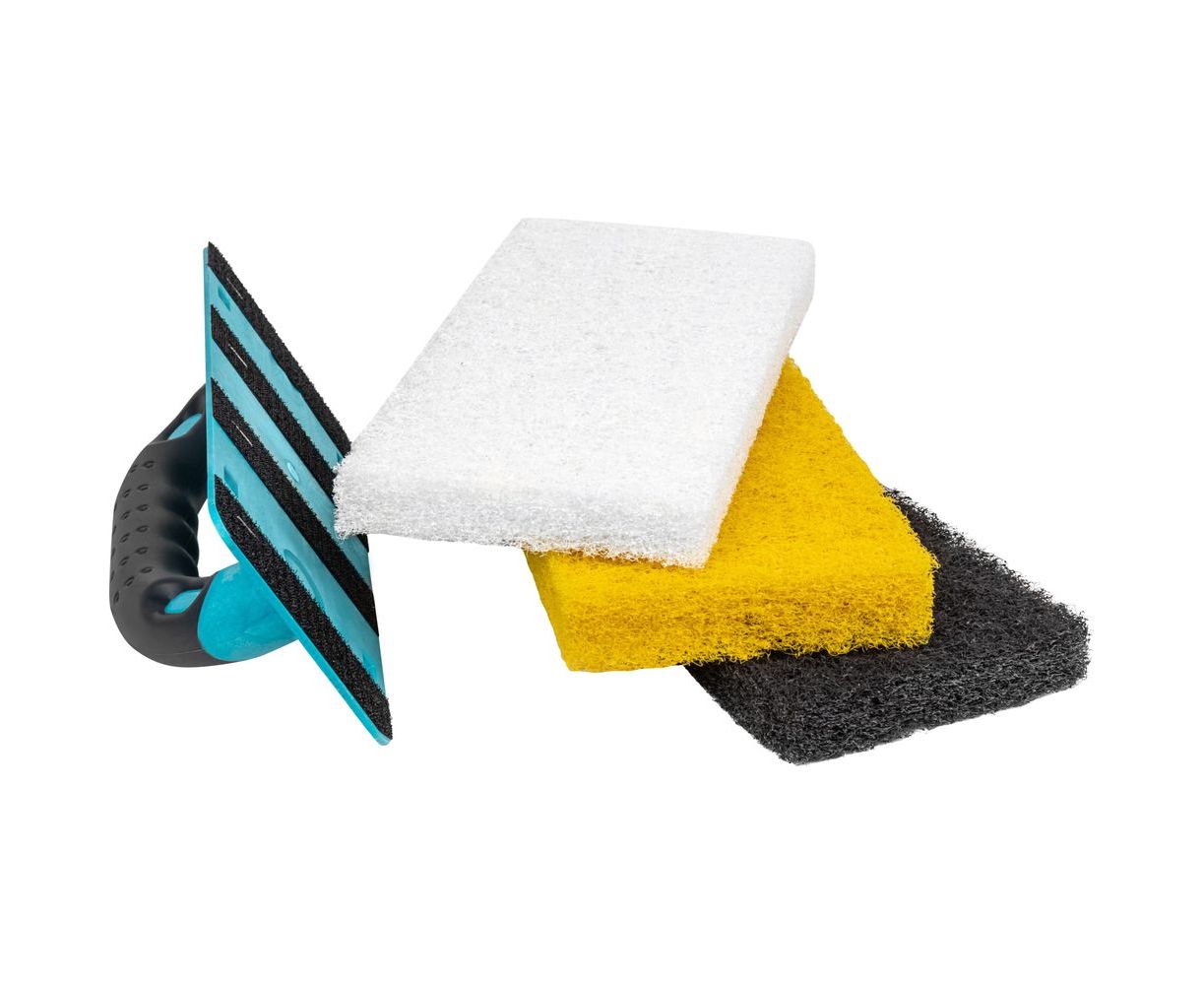 Набор падов с ручкой для очистки плитки BIHUI CSPK4 применяется для очистки плитки после затирки (мытья различных поверхностей). В комплекте 3 губки разной структуры и сменная ручка. Губки крепятся на липучку (как черепашки на основу). С данным набором профессиональные плиточники могут выполнять широчайший спектр работ с любыми типами поверхностей, но особенно работы по очистки после укладки плитки.