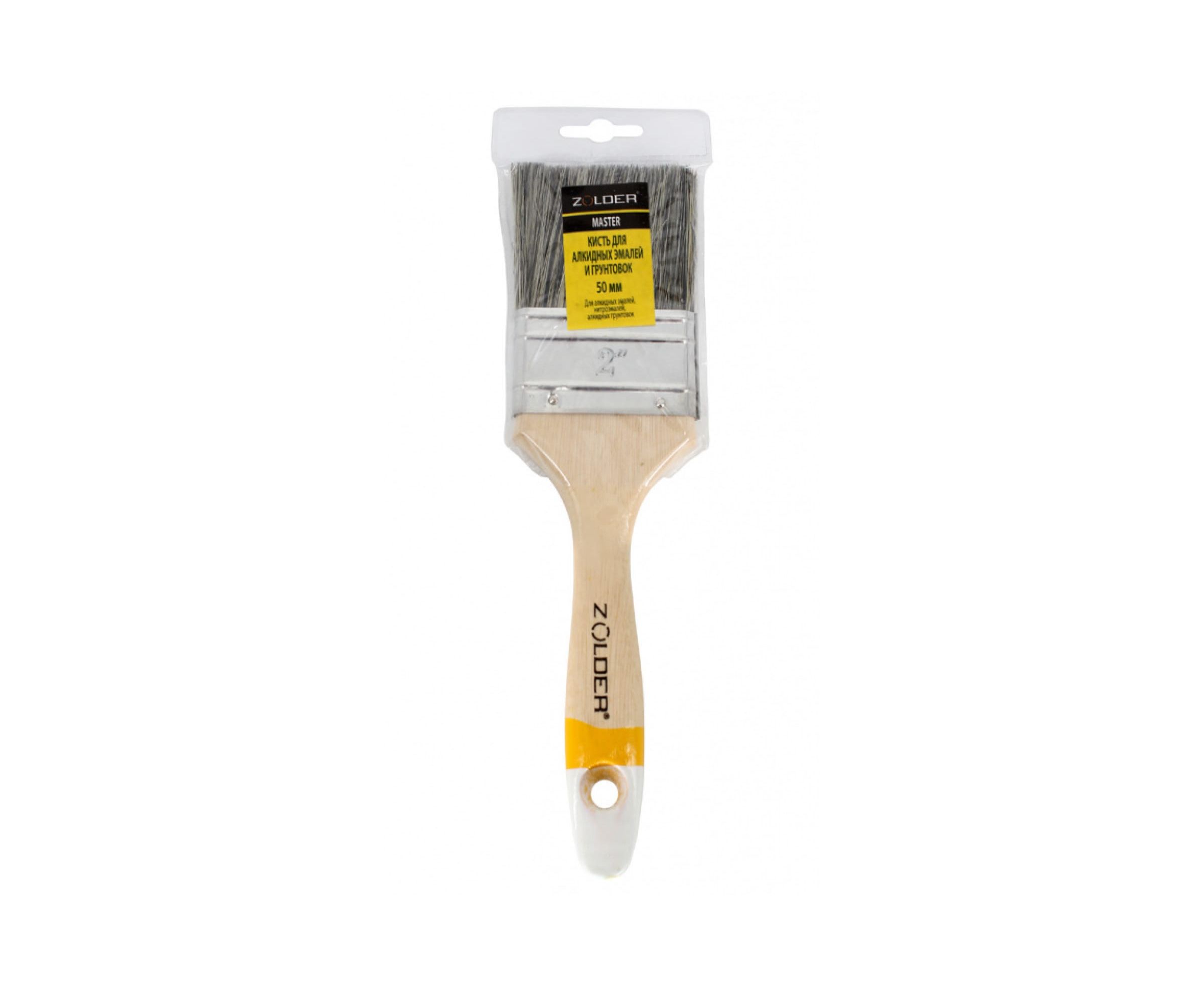 Плоская кисть для алкидных эмалей и грунтовок ZOLDER 50 х 14 мм, смешанная щетина, деревянная ручка en05014