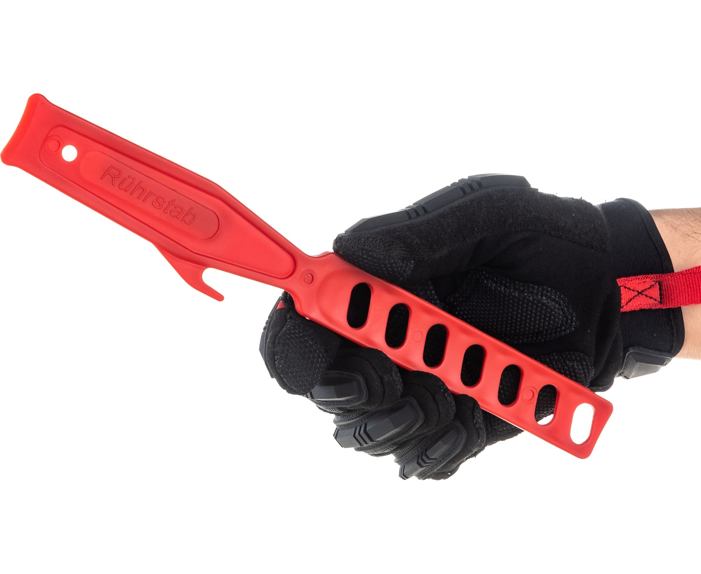 Ручной миксер сделан из ударопрочного пластика и имеет отверстия, которые позволяют аккуратно распределять краску по емкости или правильно комбинировать с разбавителем. Контурная ручка хорошо ложится в руку, что повышает удобство работы. Миксер имеет уникальную форму, используется погружным методом (погружается в сосуд), а потому весьма компактен и может использоваться с любыми емкостями. Понятная и простая в освоении конструкция, позволяющая с минимальной нагрузкой смешать большой объем краски.