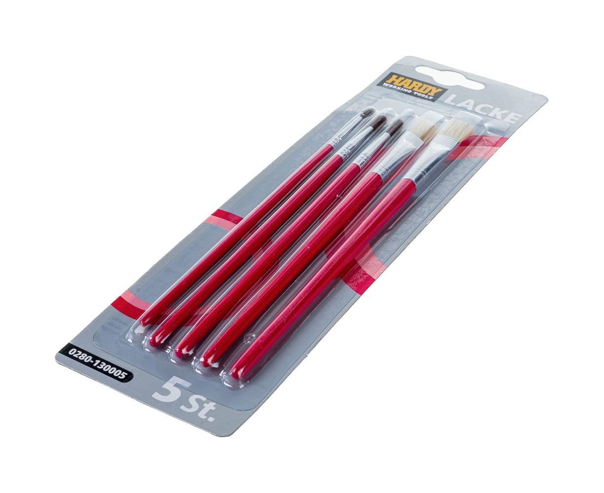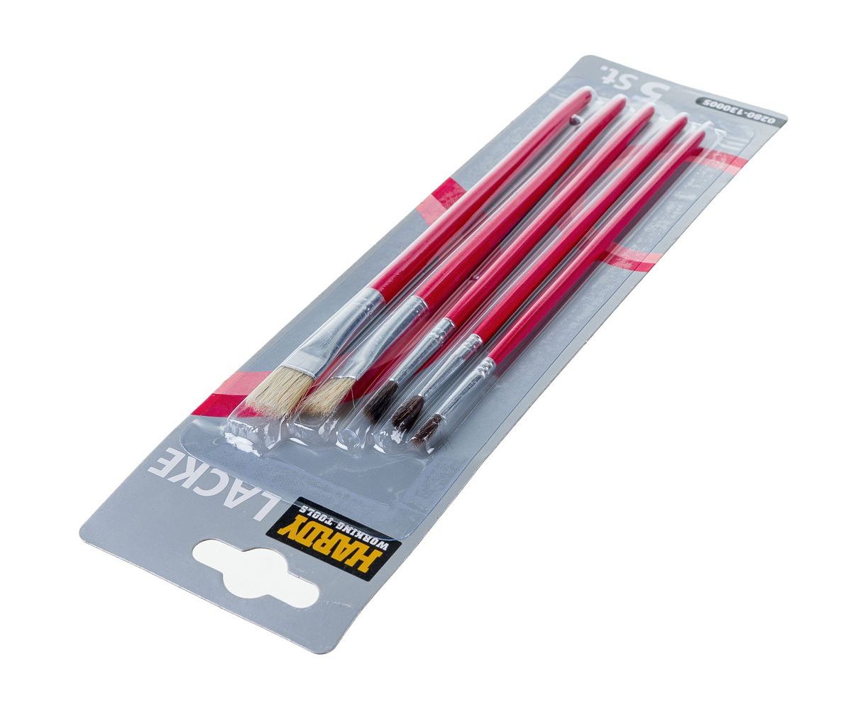 Набор кистей HARDY 5 шт. 0280-130005 предназначен для работ по покраске небольших поверхностей, труднодоступных мест и отделке деталей, а также для художественных работ на холсте, бумаге, оргалите и других поверхностях.