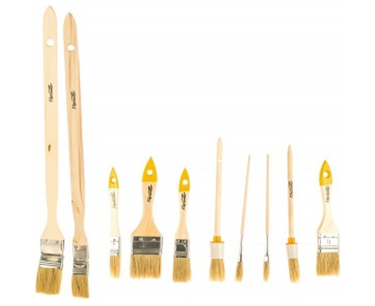 Набор кистей SPARTA 10 шт. 841155 - комплект ручного малярного инструмента, имеющий различные формы, размеры и назначение. Все кисти оснащены натуральной светлой щетиной и удобными деревянными рукоятками. Составные части надежно зафиксированы между собой с помощью металлического бандажа. Отверстия для подвеса в хвостовой части ручек позволяют хранить изделия в подвешенном состоянии.