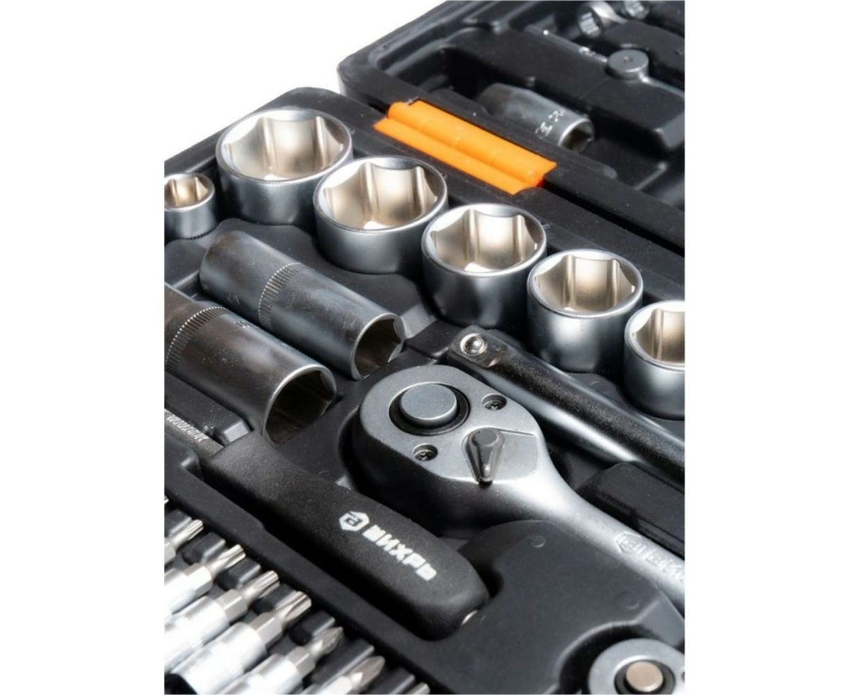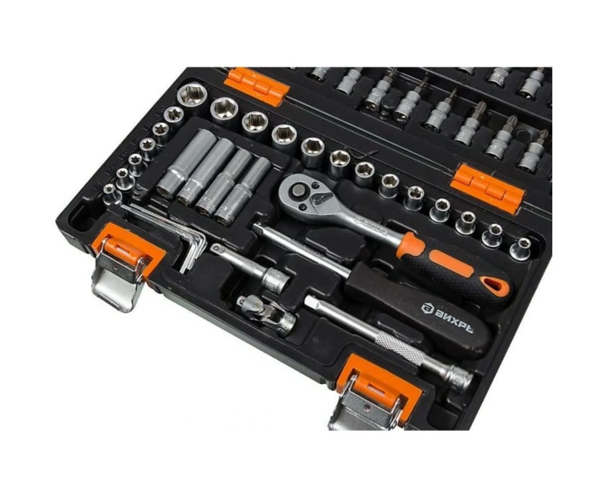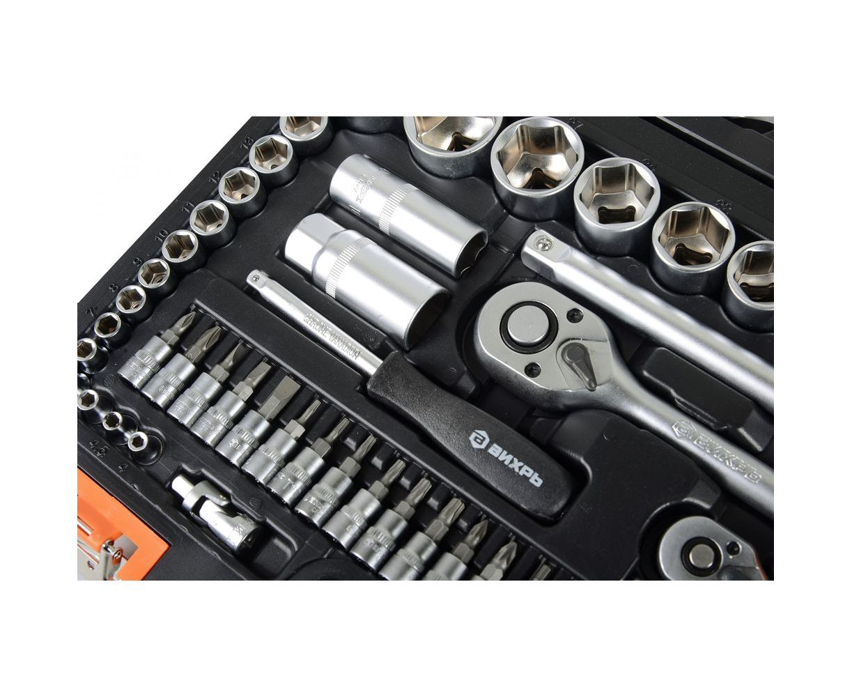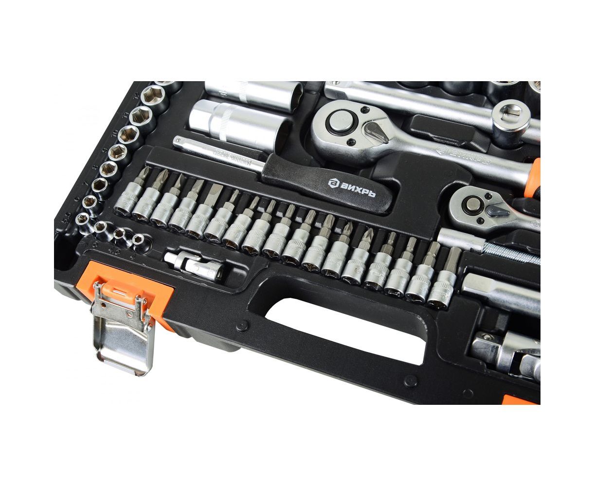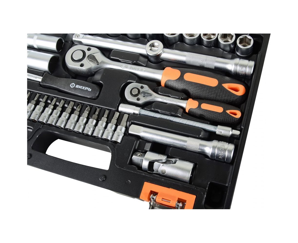Набор инструментов 1/2, 1/4 дюйма, CrV, пластиковый кейс 82 предмета Вихрь 73/6/7/3