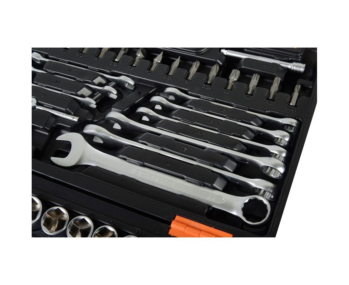 Хромванадиевая сталь обеспечивает комбинированным ключам и торцевым головкам высокую твердость в сочетании с малым весом. Отвертки и биты изготовлены из стали марки S2, которая также придает требуемую твердость. Весь инструмент соответствует международным стандартам качества.