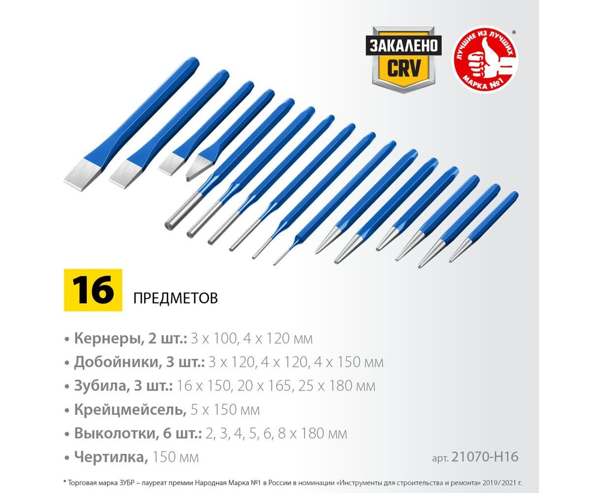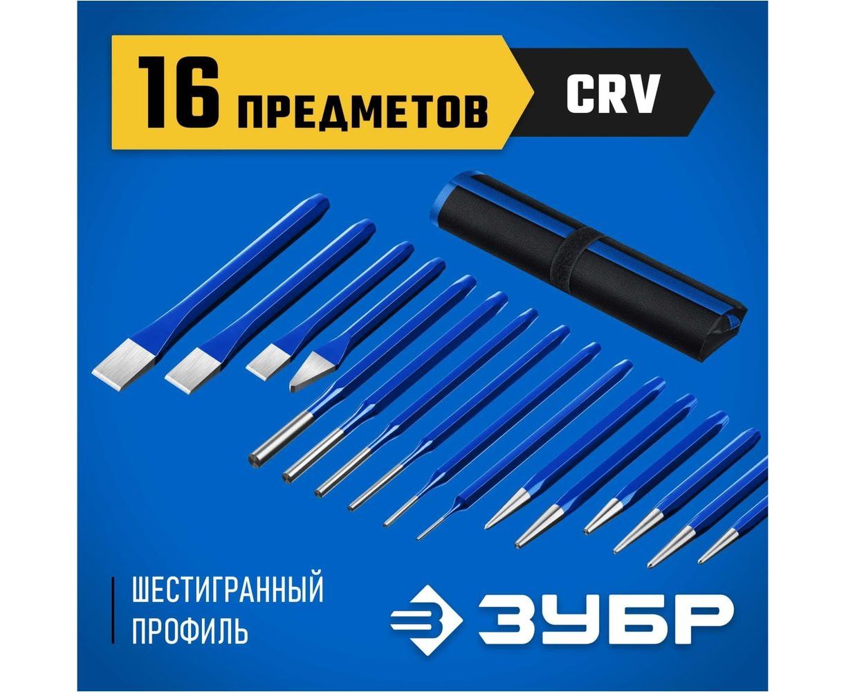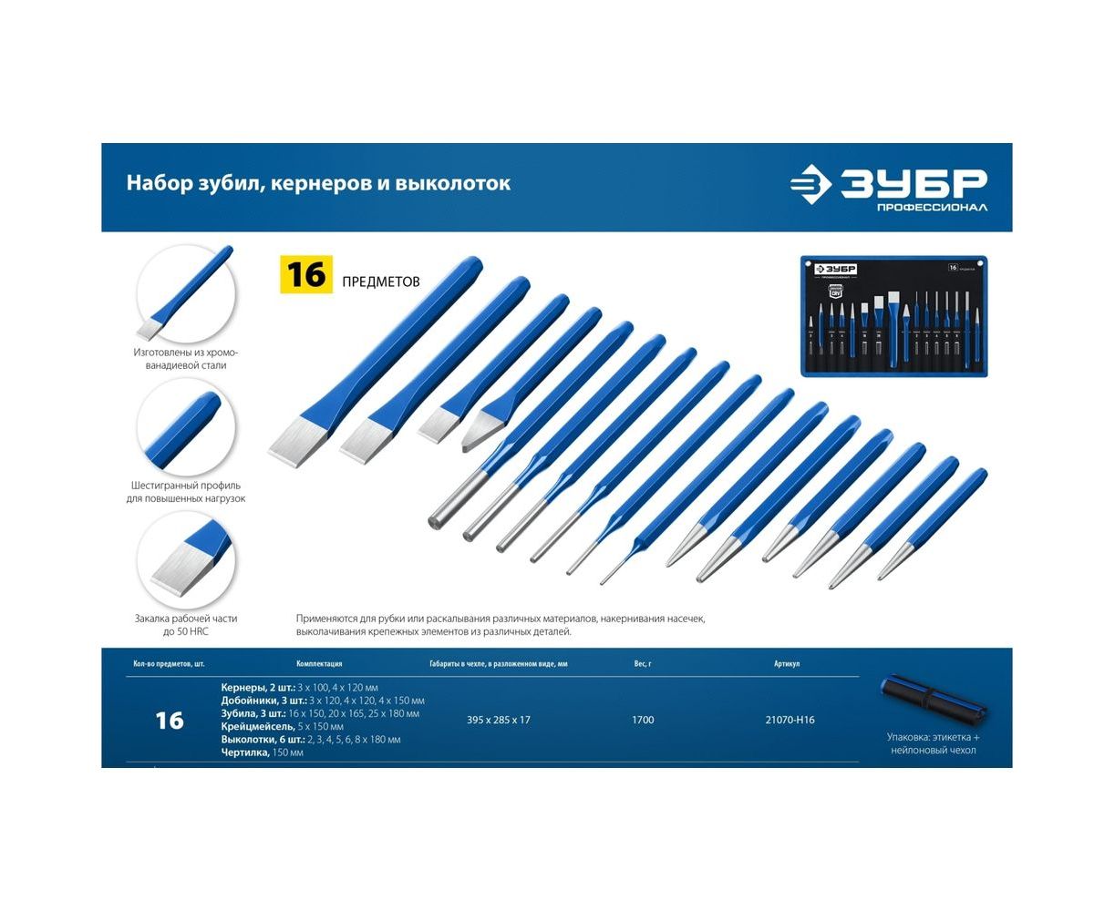 Набор зубил и кернеров ЗУБР Профессионал в чехле, 16 предметов 21070-H16