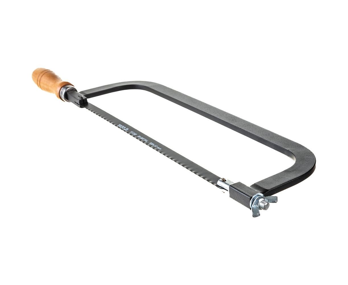 Ножовка по металлу YATO 300мм с деревянной ручкой YT-3160 из стального листа. Натяжение пильного диска винтом с барашковой гайкой. В комплект входит одностороннее биметаллическое пильное полотно 300 x 12 мм с шагом 24 витка на дюйм.