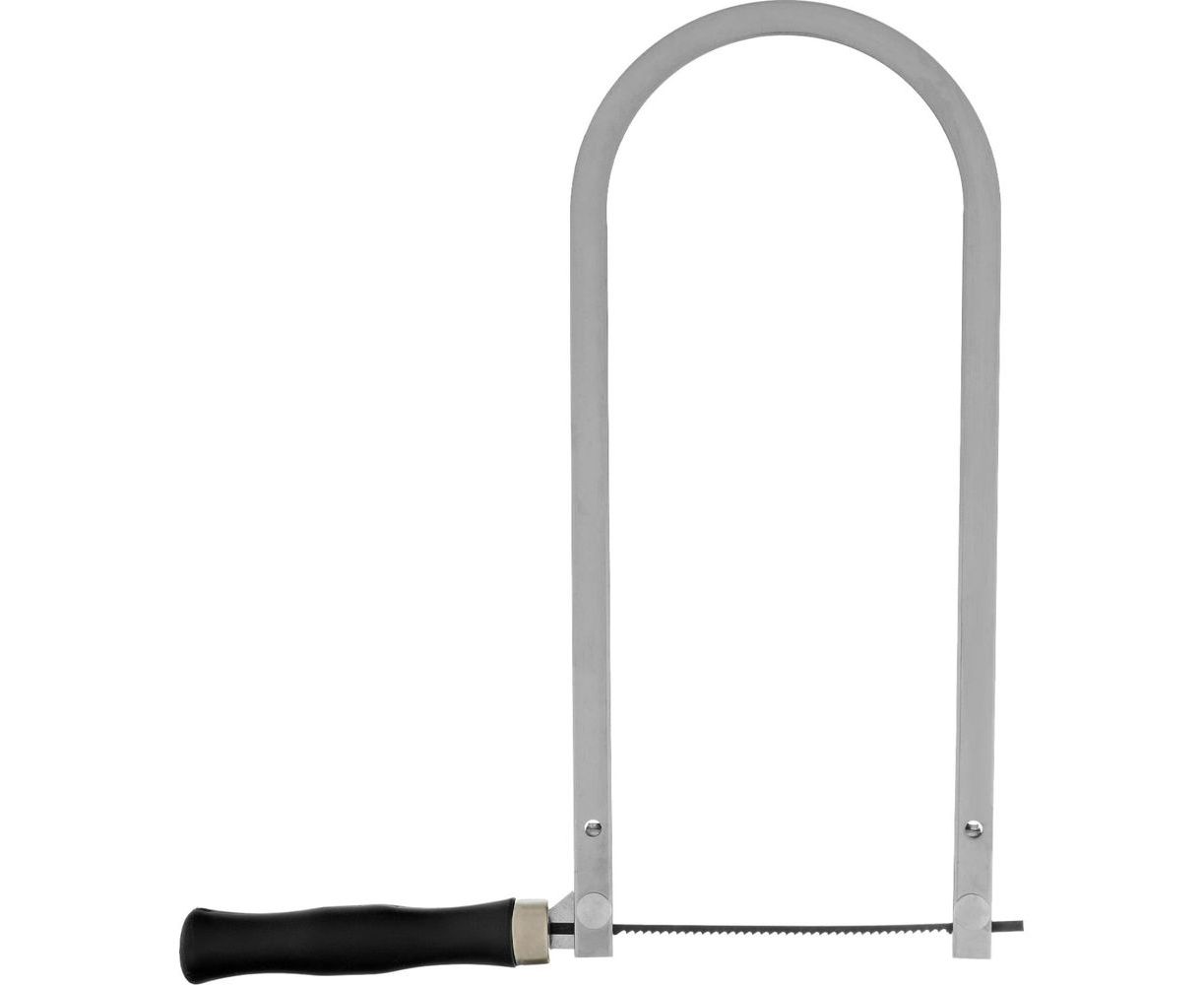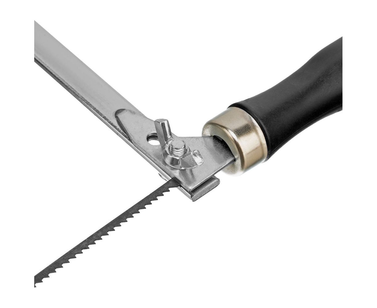 Лобзик Sparta 240245 длиной 300 мм предназначен для выполнения прямо- и криволинейных распилов в фанерных или пластиковых заготовках. Прочная и упругая стальная рама надежно удерживает полотно длиной 120 мм, обеспечивая высокое качество работ. Лобзик используется для ремонта и отделки, а также для художественной резьбы по дереву.