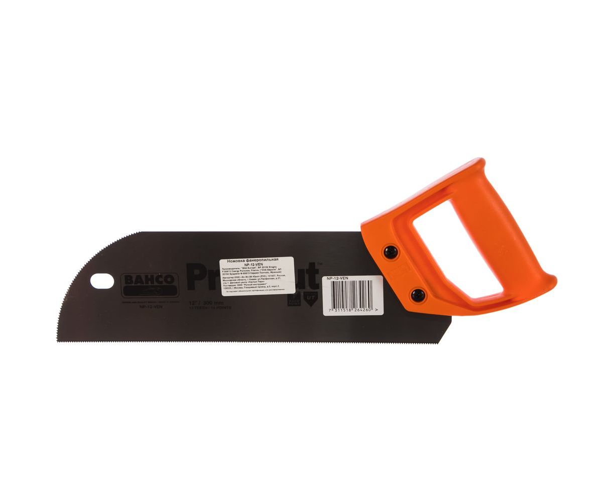 Ножовка BAHCO NP-12-VEN предназначена для пиления фанеры, пластмассы и ламинированных изделий. Закаленные зубья обеспечивают остроту ножовки на долгое время. Носовая часть с насеченными зубьями предназначена для врезания в середину листового материала. Монолитная пластиковая рукоятка обеспечивает крепкий захват инструмента во время работы.