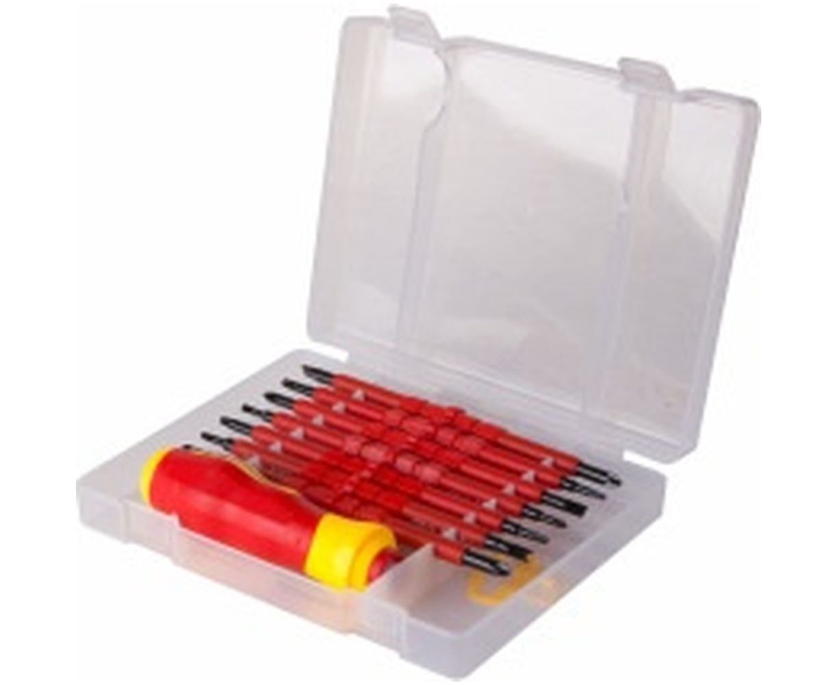 Набор отверток PROCONNECT 8 предметов 12-4773 имеет изолирующее покрытие, которое позволяет осуществлять электромонтажные работы.Набор изделий предназначен для монтажа и демонтажа крепежных элементов.Стержни намагничены и изготовлены из хромованадиевой стали.Эргономичная изолированная двухкомпонентная рукоятка делает работу с инструментом легкой и удобной.Набор поставляется в пластиковом боксе.