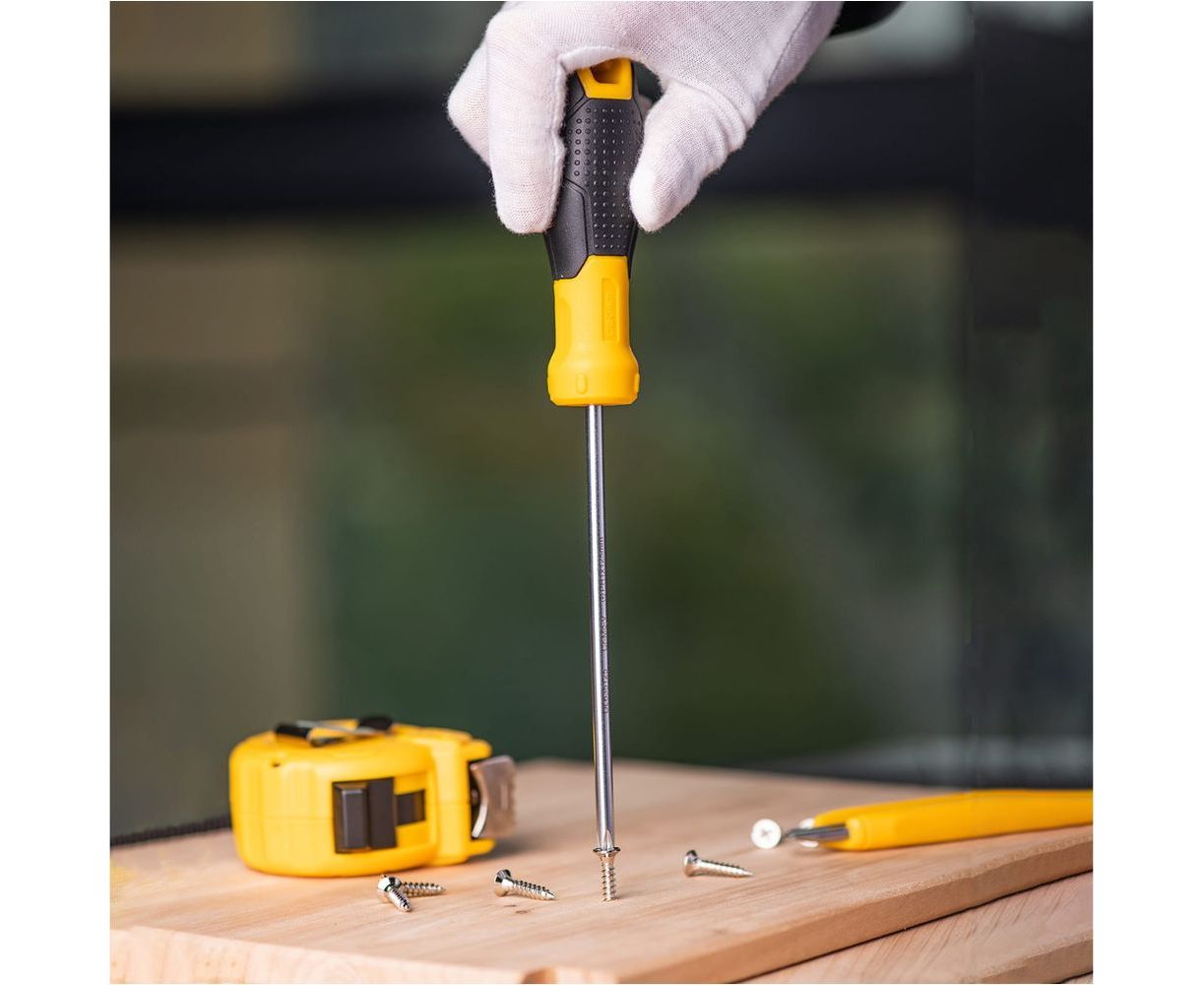 Стержень отвертки выполнен из качественной CrMoV стали с матовым покрытием, что обеспечивает высокую прочность и долговечность инструмента.