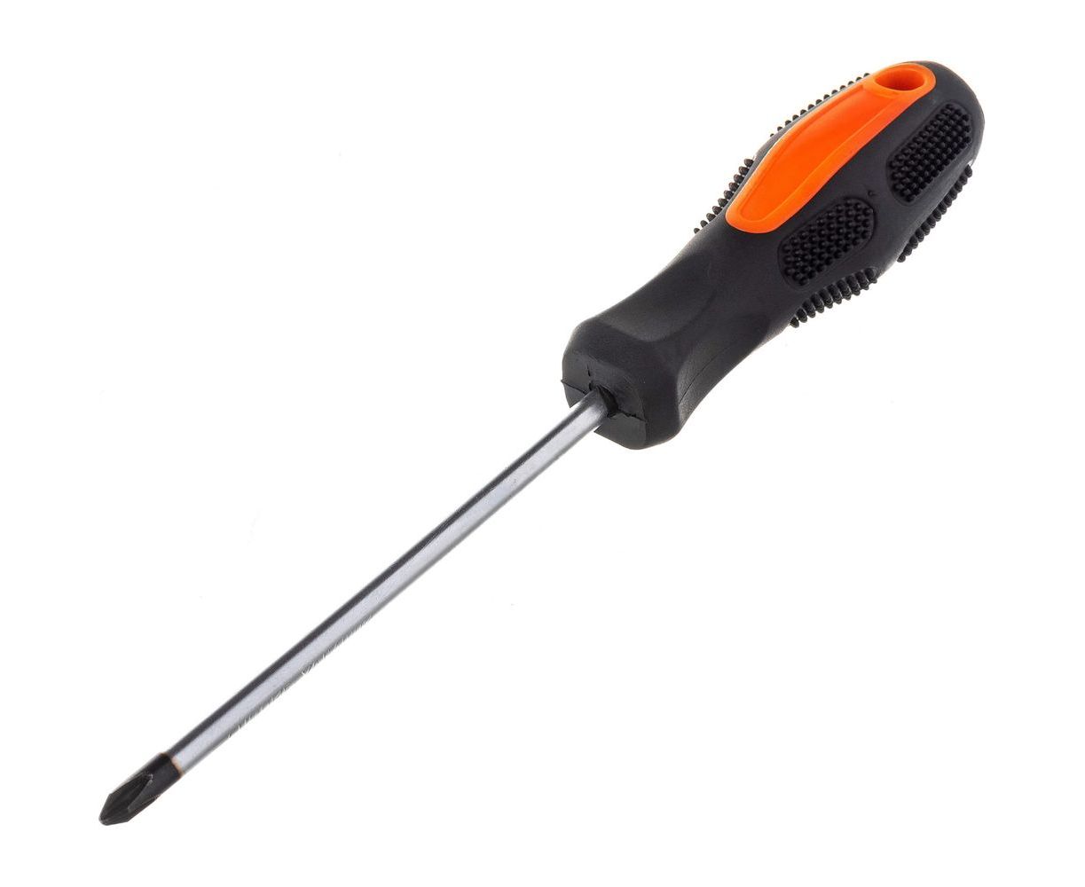 Крестовая отвертка PH2x125мм на держателе АвтоDело 30662 11724 оснащена двухкомпонентной рукояткой, которая облегчает удержание инструмента и вращение крепежа.
