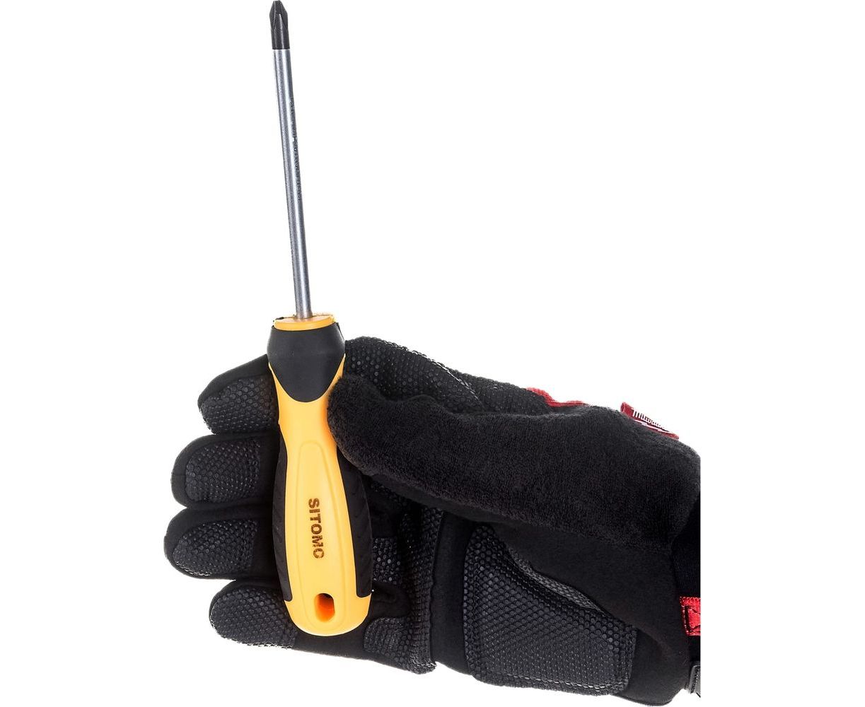 Отвертка SITOMO крест PH2 6x100 (общ. 210мм) CrV SIT 856476 подойдет для сложного крепежа. Надежное соединение допускает вращение с большим усилием.