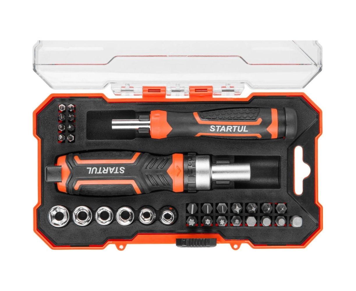 Реверсивная отвертка с набором бит и торцевых головок STARTUL Profi 31 предмет ST3095-31