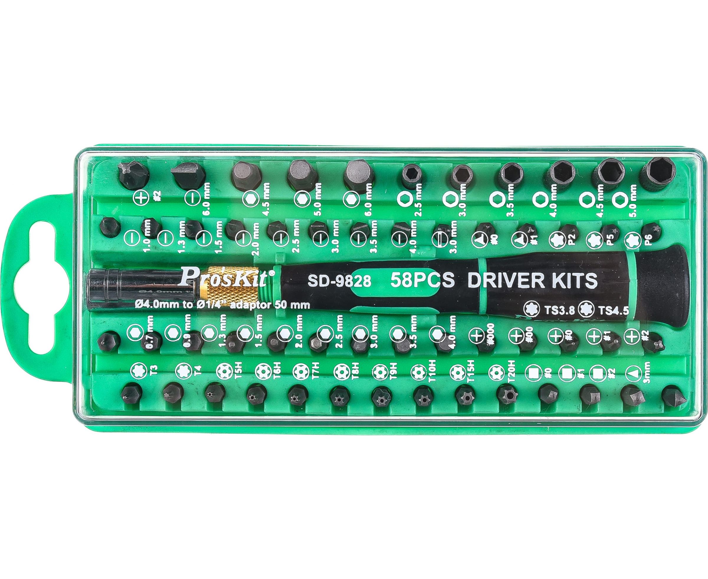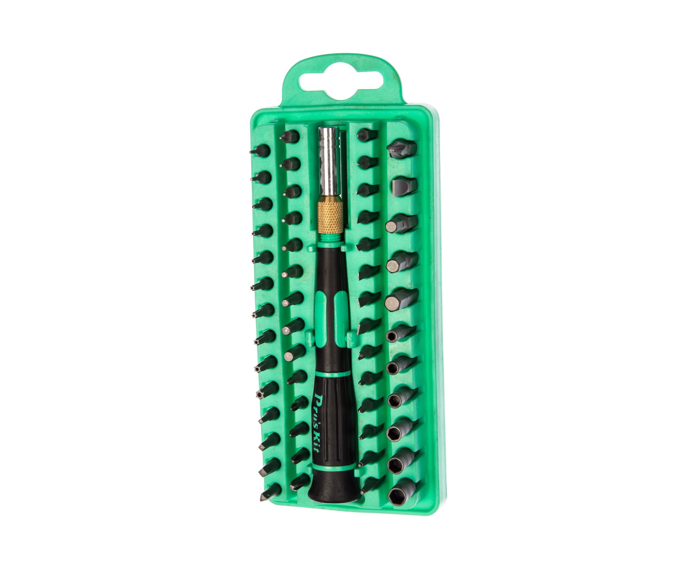Набор отверток ProsKit SD-9828 00322515 включает в себя 55 различных наконечников, что позволяет эффективно работать с классическим и нестандартным крепежом.