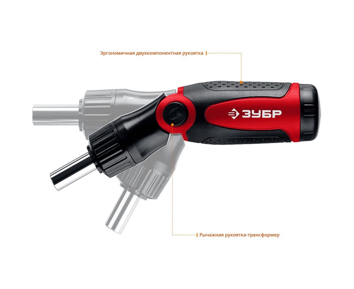 Рукоятка-трансформер имеет три положения для удобной работы в труднодоступных местах. Она не скользит в руке и обеспечивает надежный захват.