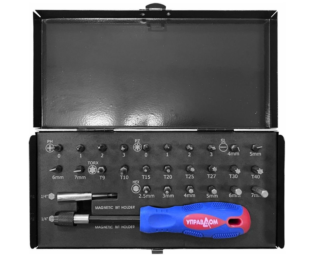 Отвертка Управдом в наборе с насадками, 28 предметов, CrV 203161-Н28 4100002316