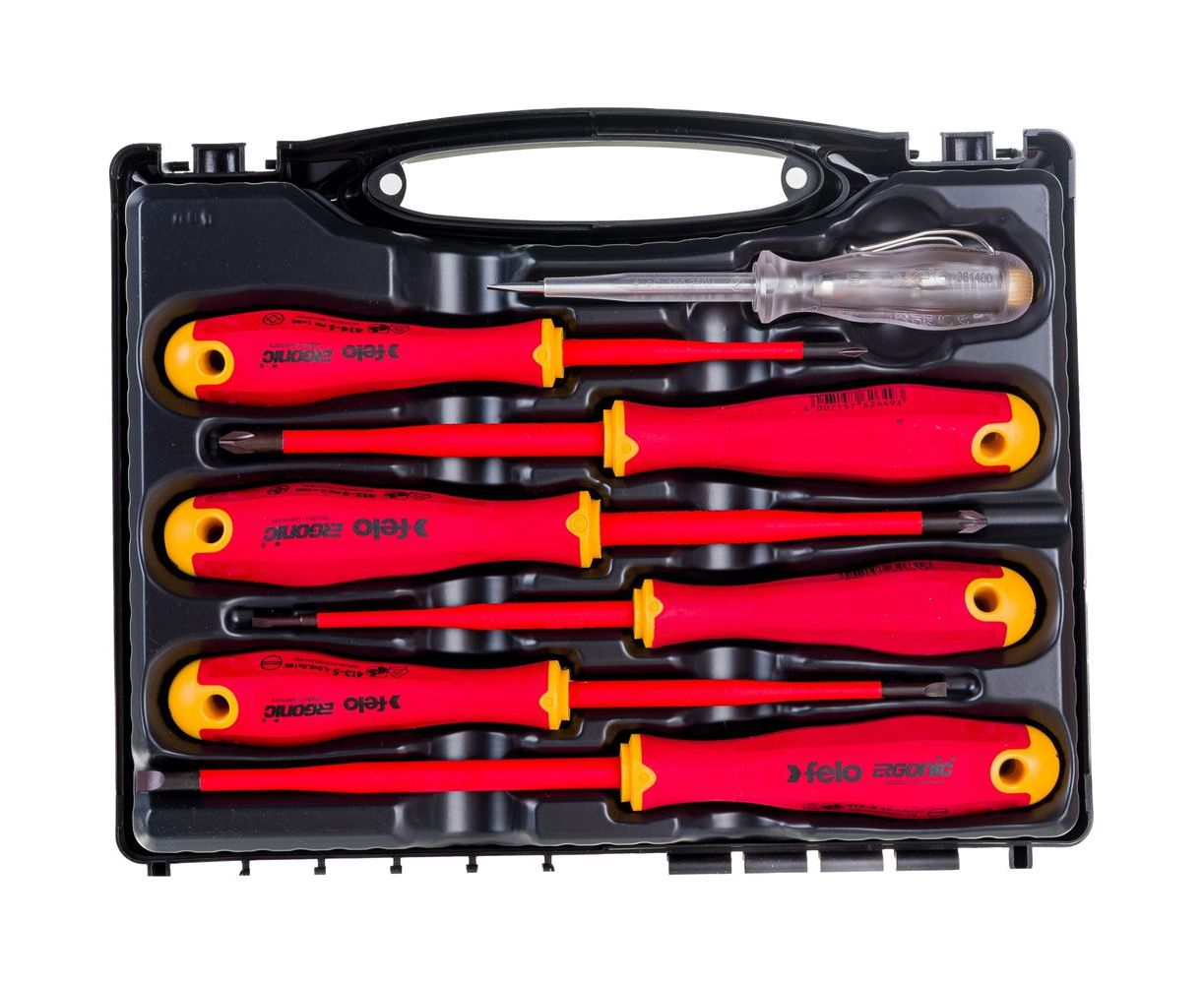 Набор диэлектрических отверток SL/PH/PZ E-Slim, отвертка тестер напряжения сети Felo Ergonic в кейсе, 7 шт 41380736