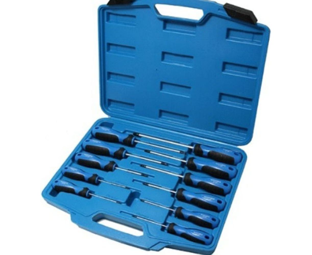 В наборе содержатся популярные размеры звездообразных отверток. Рукоятка каждого инструмента имеет удобную форму, которая отлично лежит в руке.