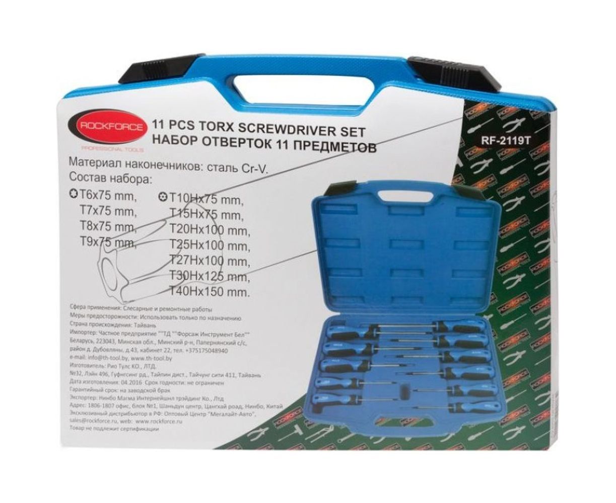 Набор отверток торкс T6H-T40H ROCKFORCE 11 предметов RF-2119T