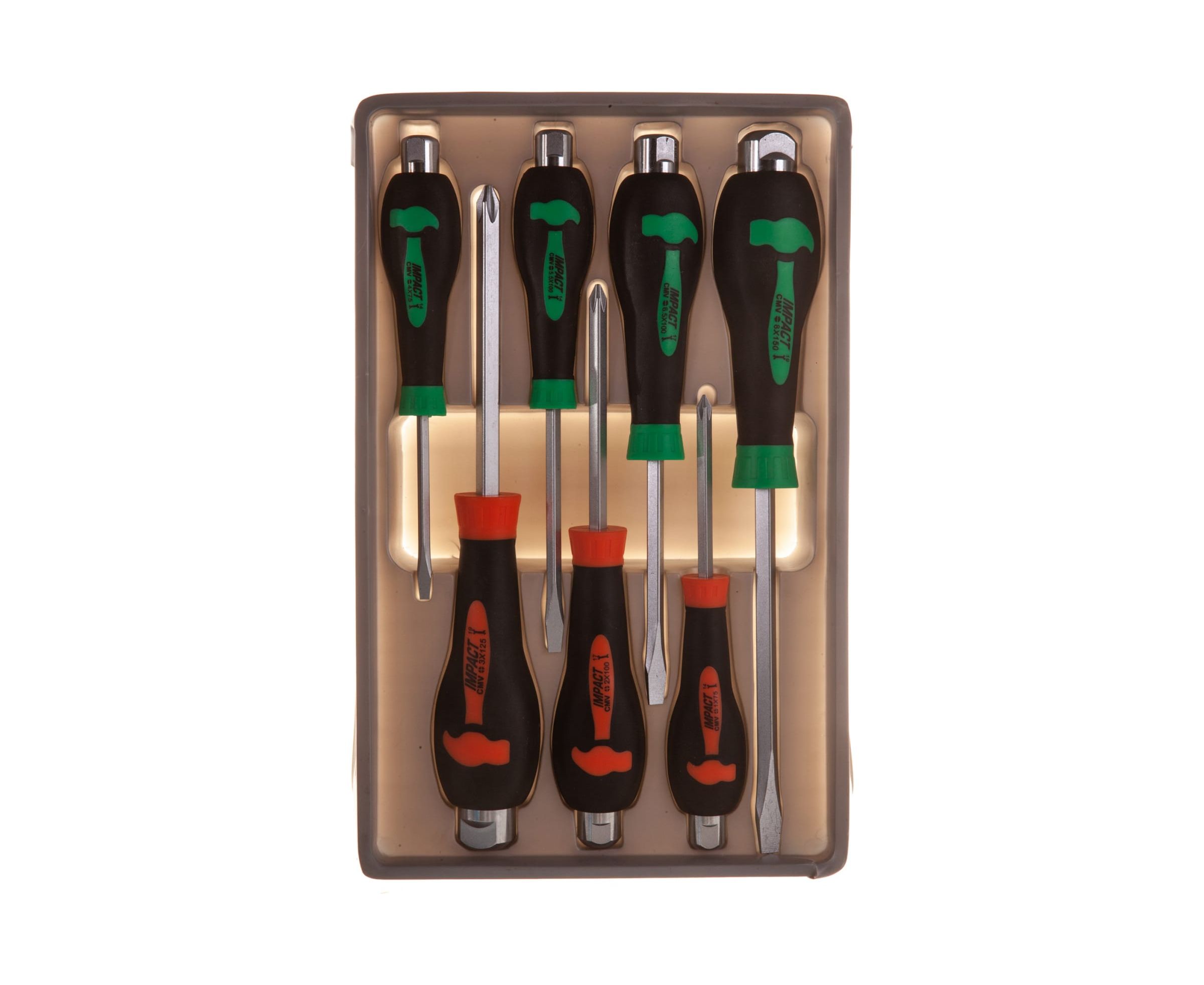 Набор силовых отверток СТАНКОИМПОРТ SD-9917 предназначен для монтажных и демонтажных, а также ударных работ. Относятся к инструментам профессионального класса.