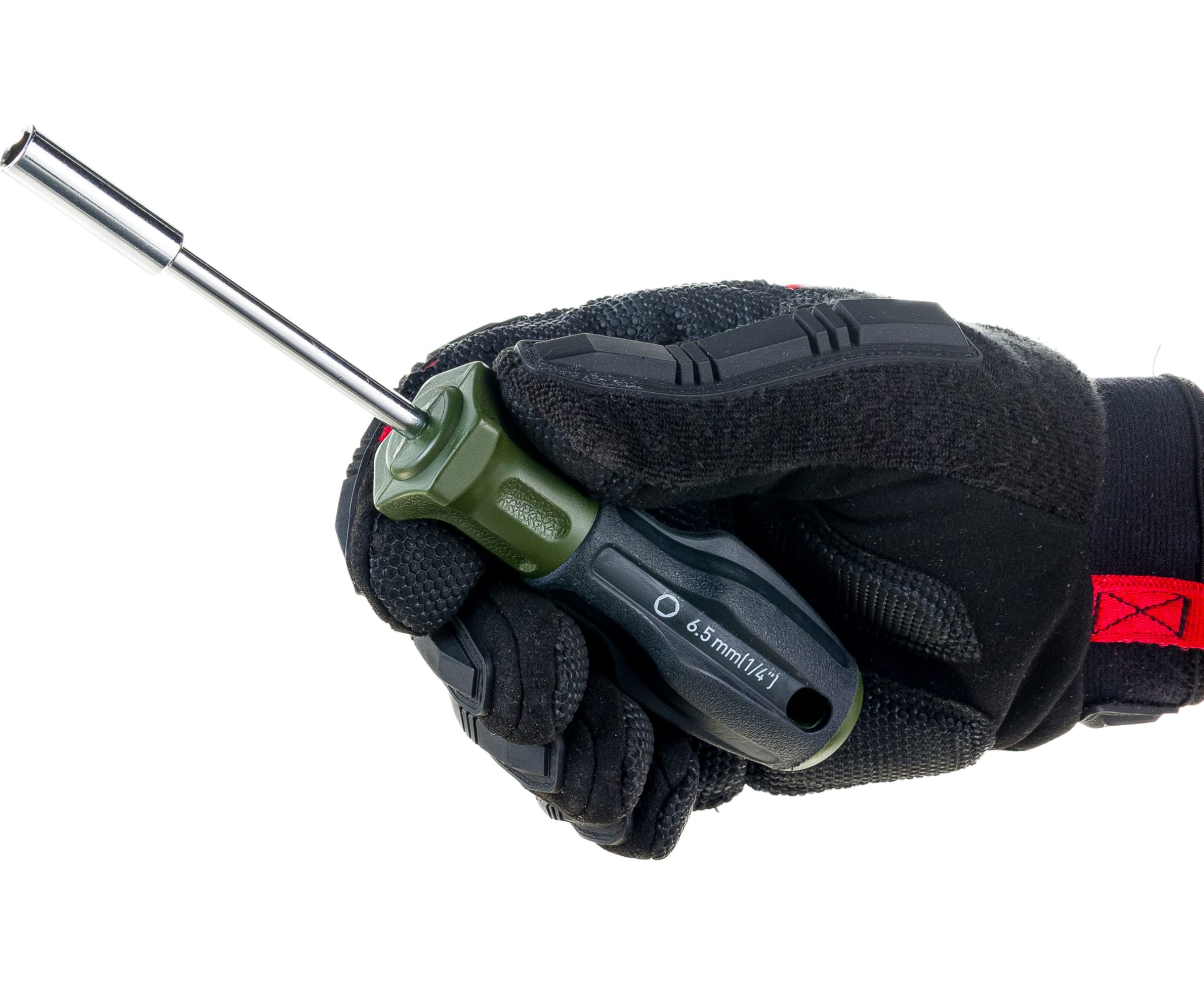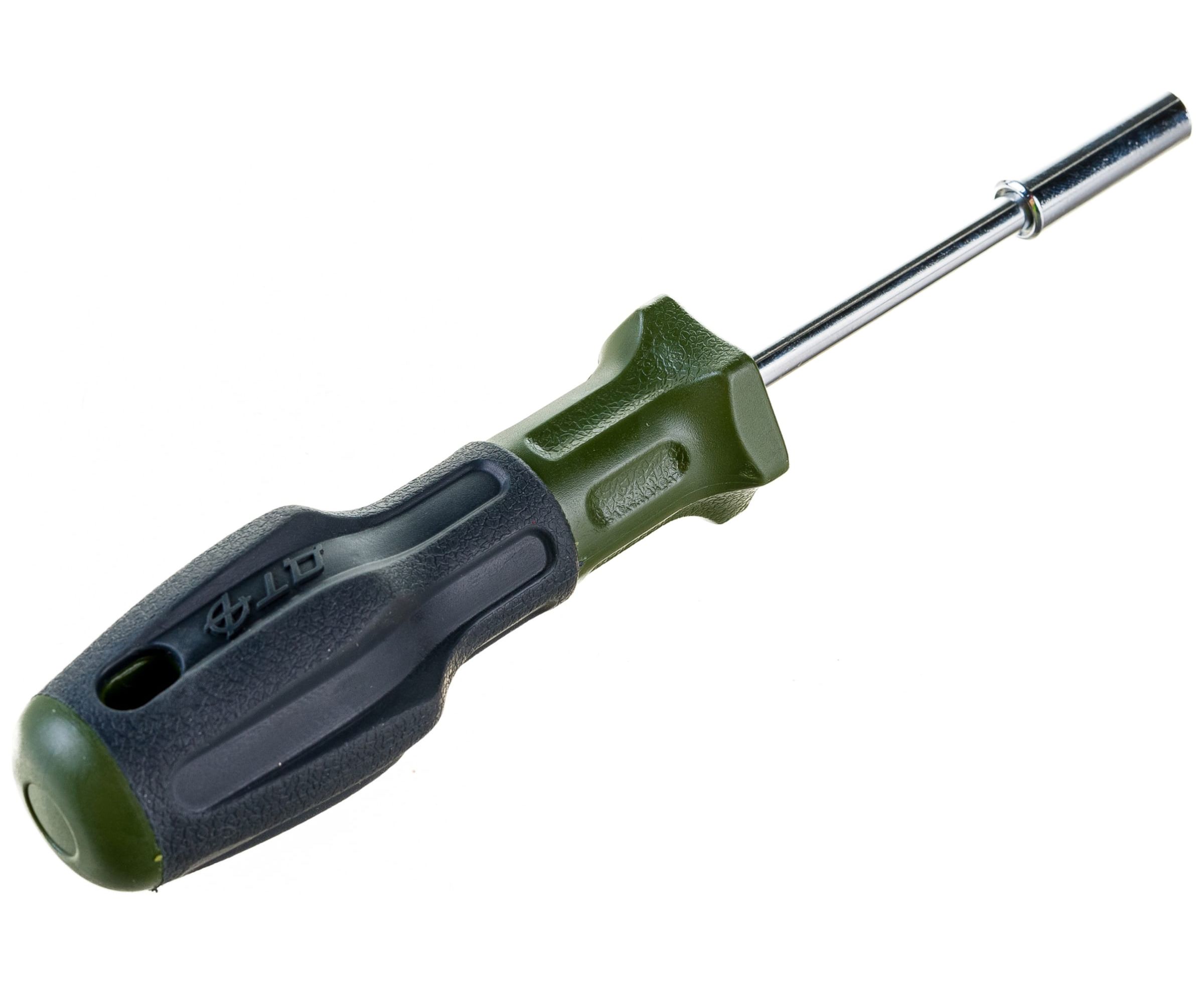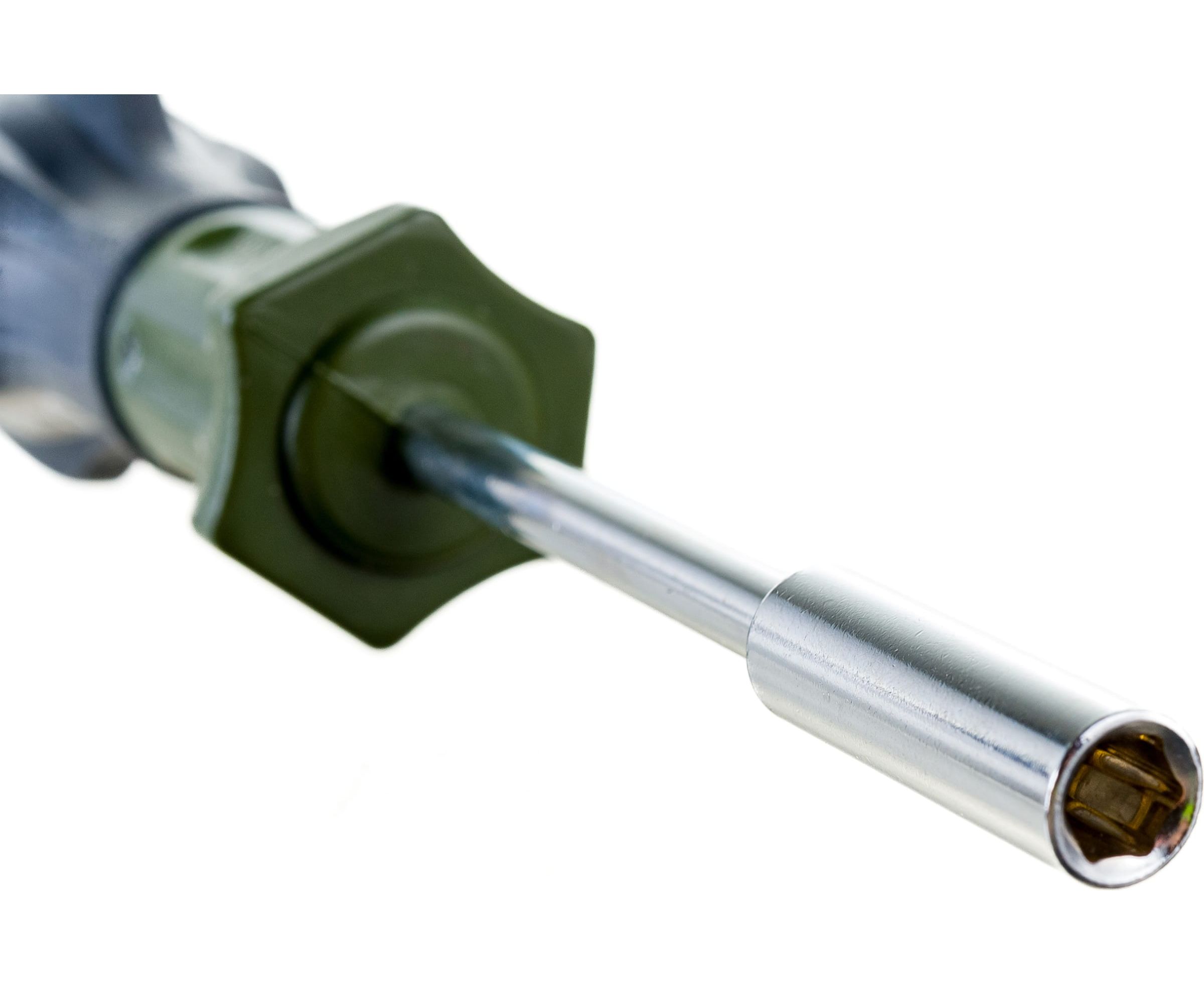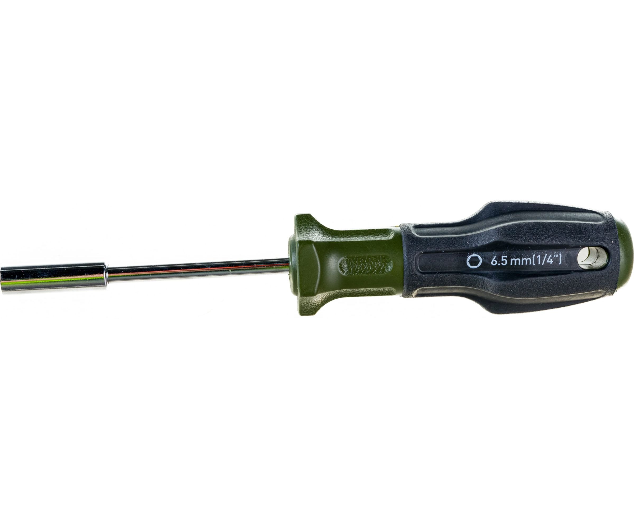Отвертка под биты 1/4 дюйма Дело техники 718600 выполнена из углеродистой стали с твердостью 48-56 HRC. Это позволяет эффективно работать практически с любым крепежом.