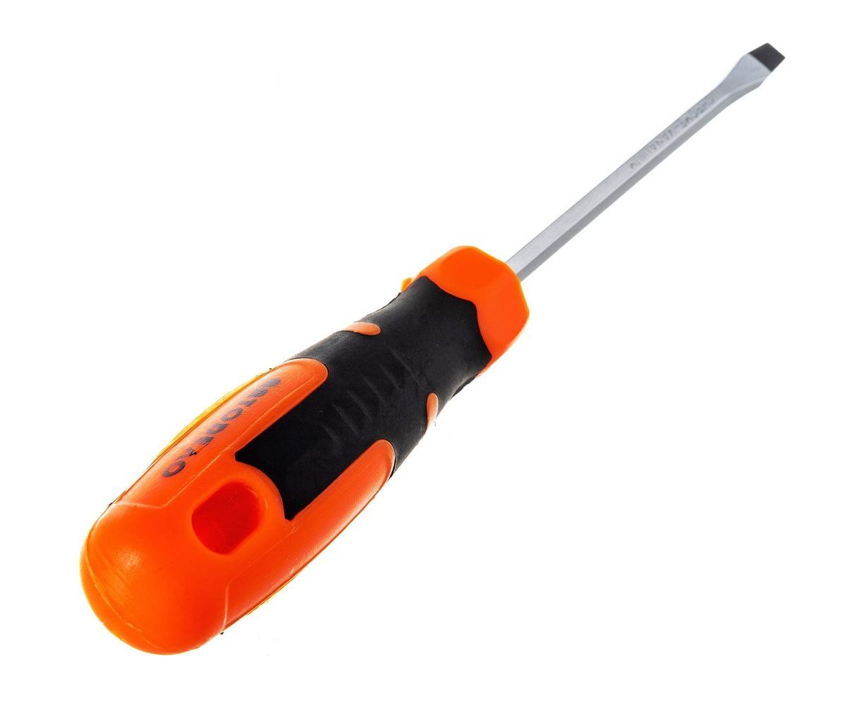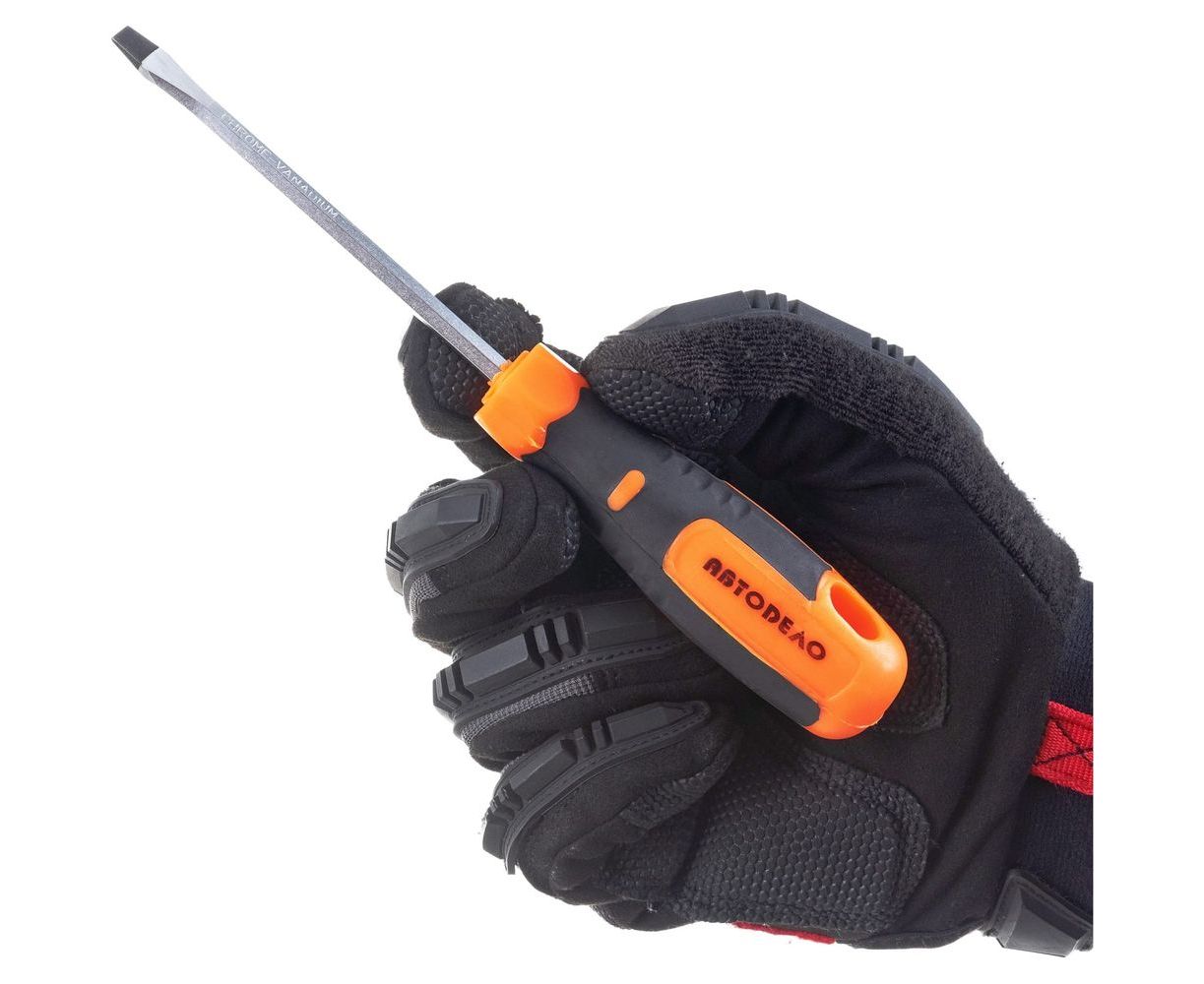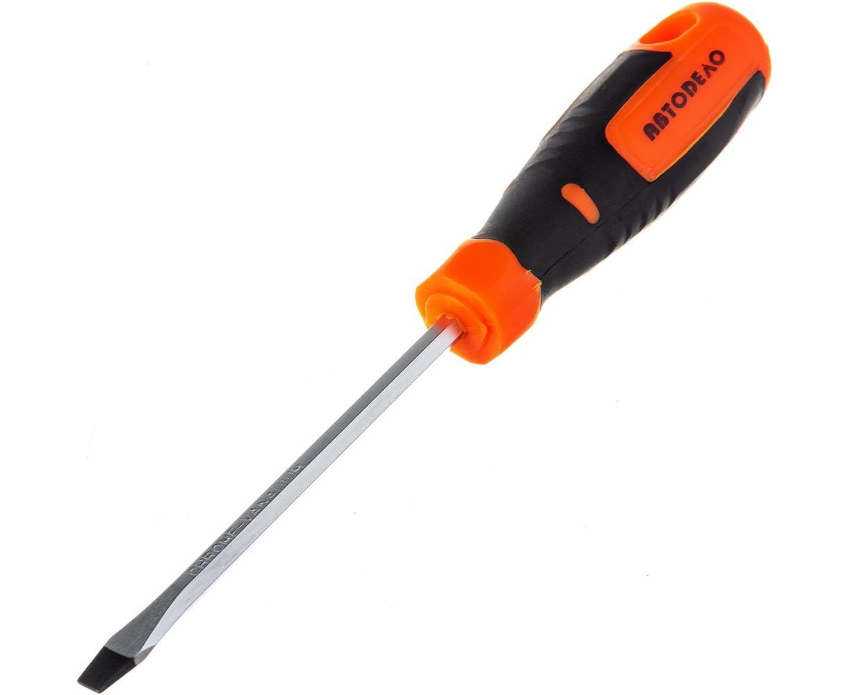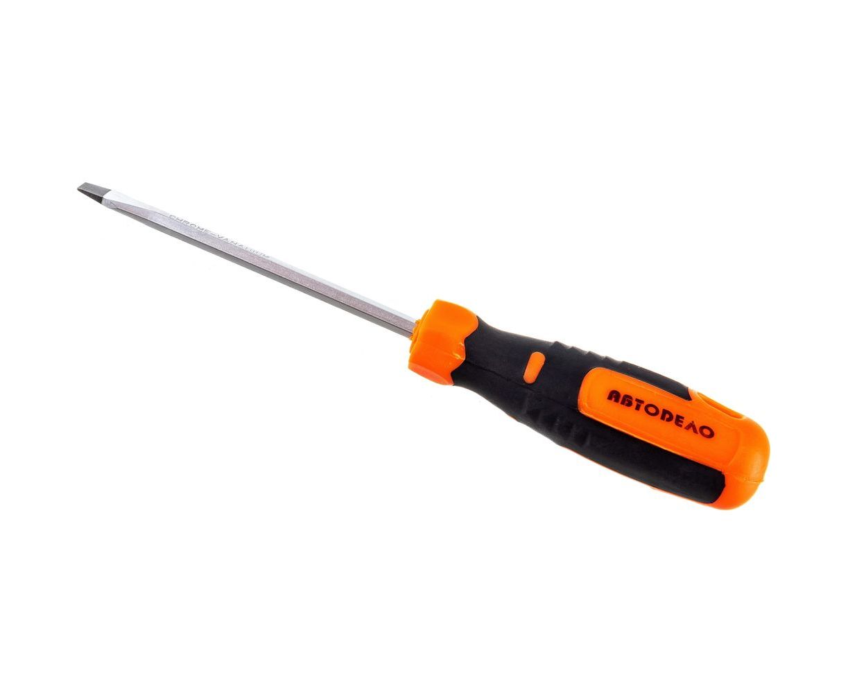 Шлицевая отвертка 5х100мм 6гр стержень АвтоDело 39471 11706 оснащена двухкомпонентной рукояткой, которая облегчает удержание инструмента и вращение крепежа.