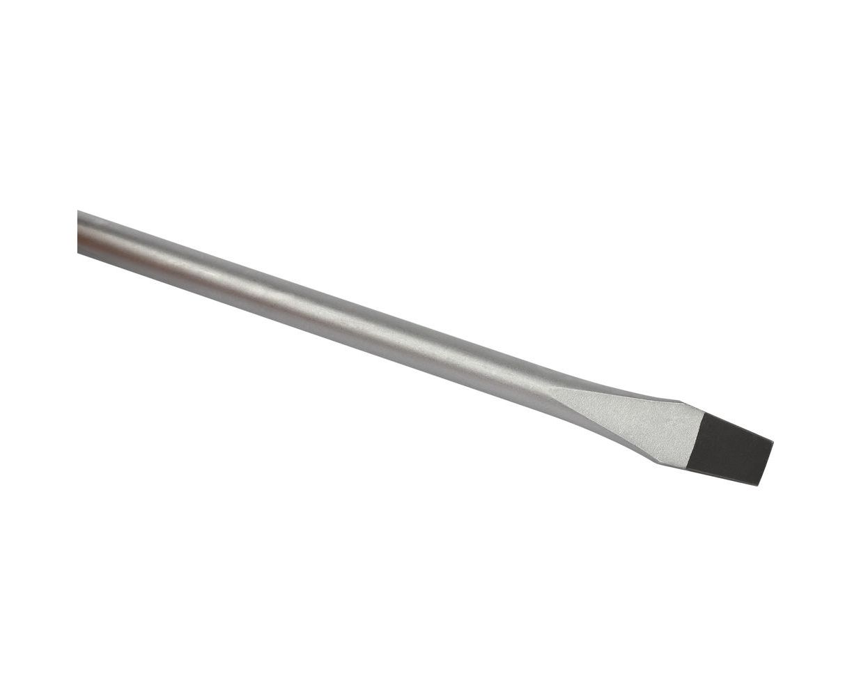 Шлицевая отвертка предназначена для работ с крепежом в процессе ремонтных и монтажных работ. Стержень выполнен из высококачественной хромованадиевой стали, благодаря чему отличается надежностью и долговечностью. Отвертка имеет магнитный наконечник для эффективного монтажа элементов в труднодоступных местах. Двухкомпонентная рукоятка отвертки удобно лежит в руке, предотвращает проскальзывание инструмента во время работы и позволяет придать максимальное усилие вращению. Усовершенствованная форма наконечника обеспечивает качественное сцепление с винтом. Большая площадь соприкосновения улучшает функцию закручивания.