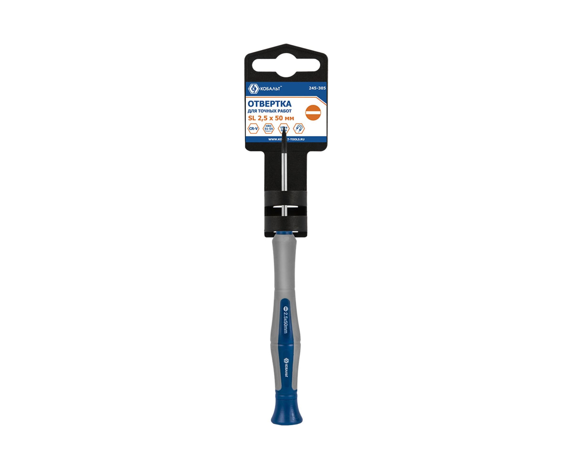 Отвертка для точных работ SL 2.5 х 50 мм CR-V,подвес КОБАЛЬТ Ultra Grip 245-305