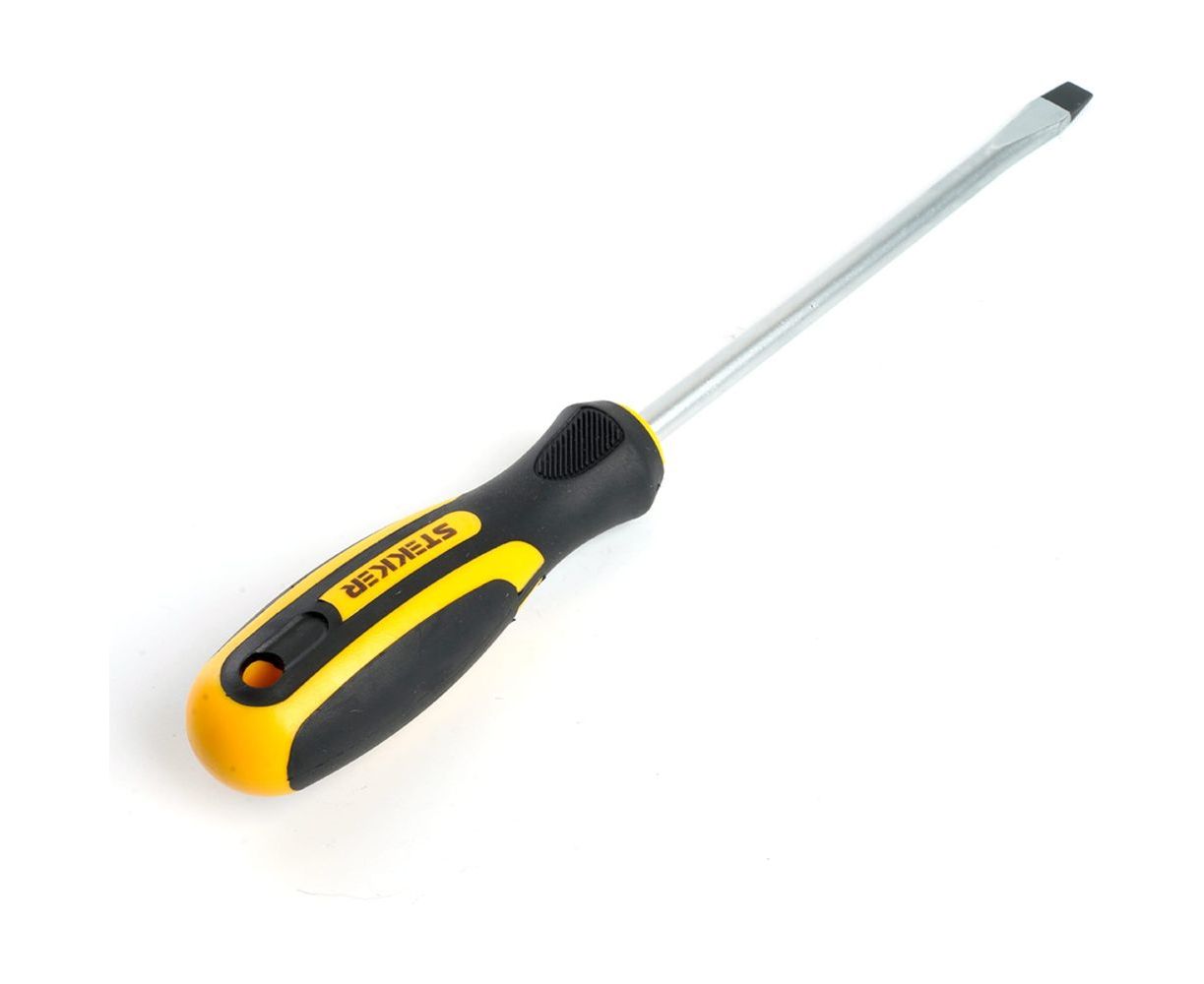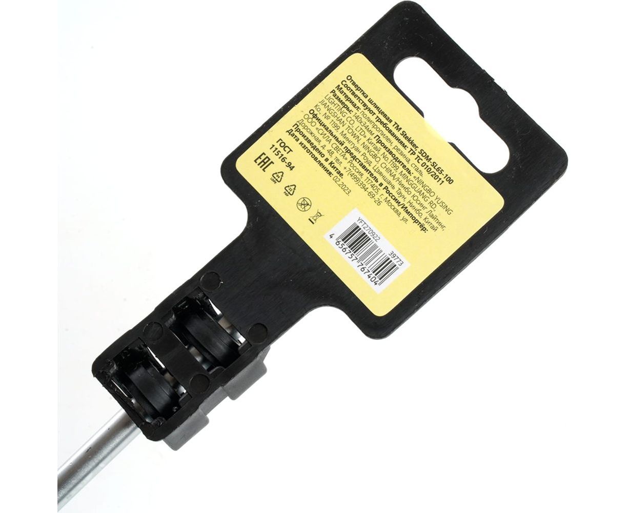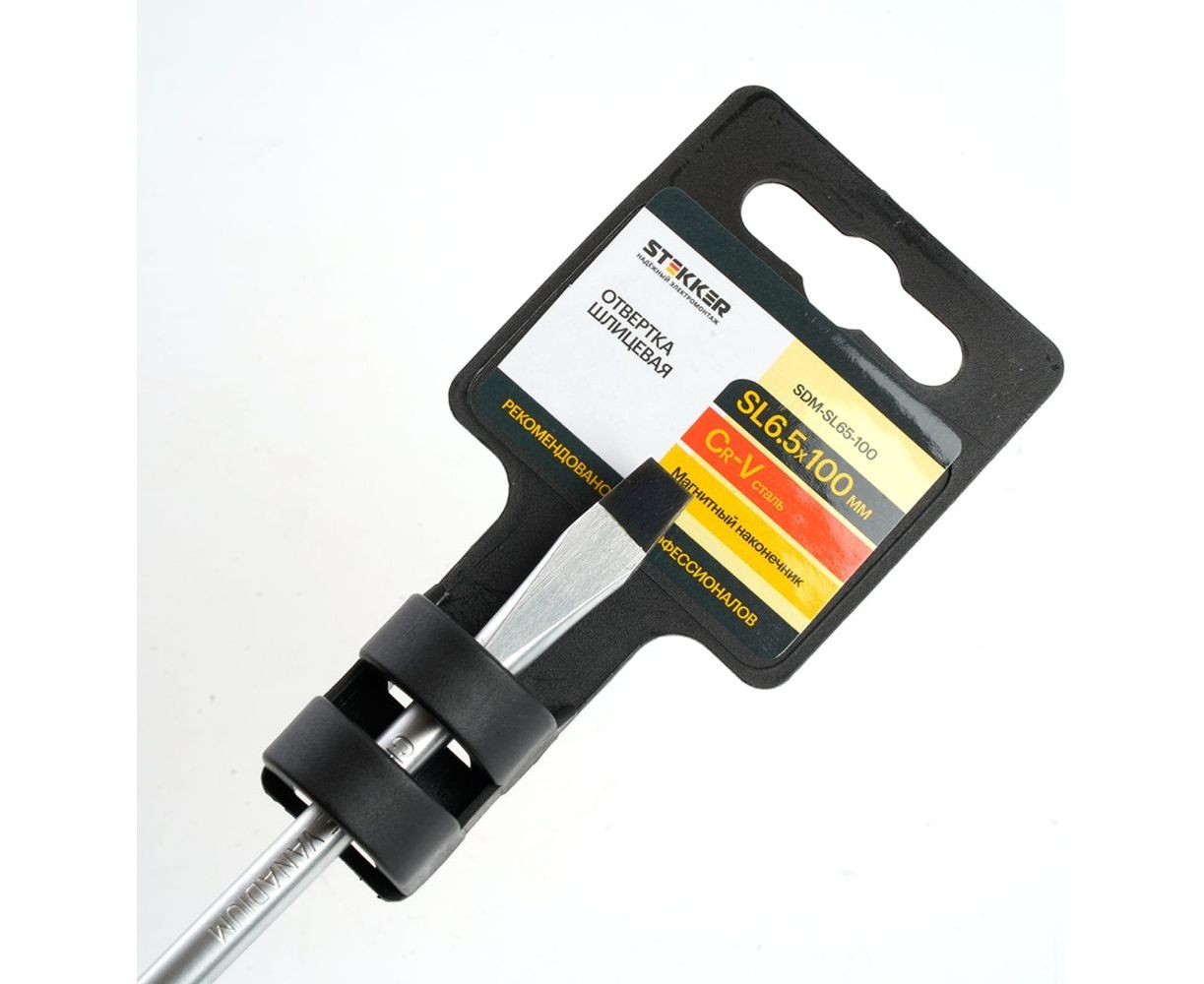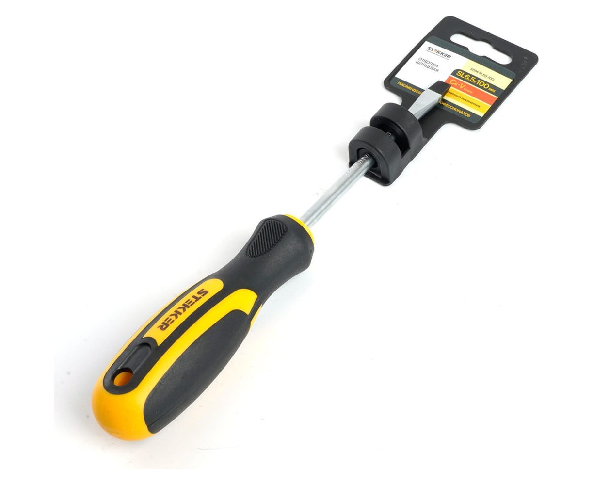 Шлицевая отвертка STEKKER SL 6.5 х 100 мм cr-v, двухкомпонентная рукоятка SDM-SL65-100, 39773