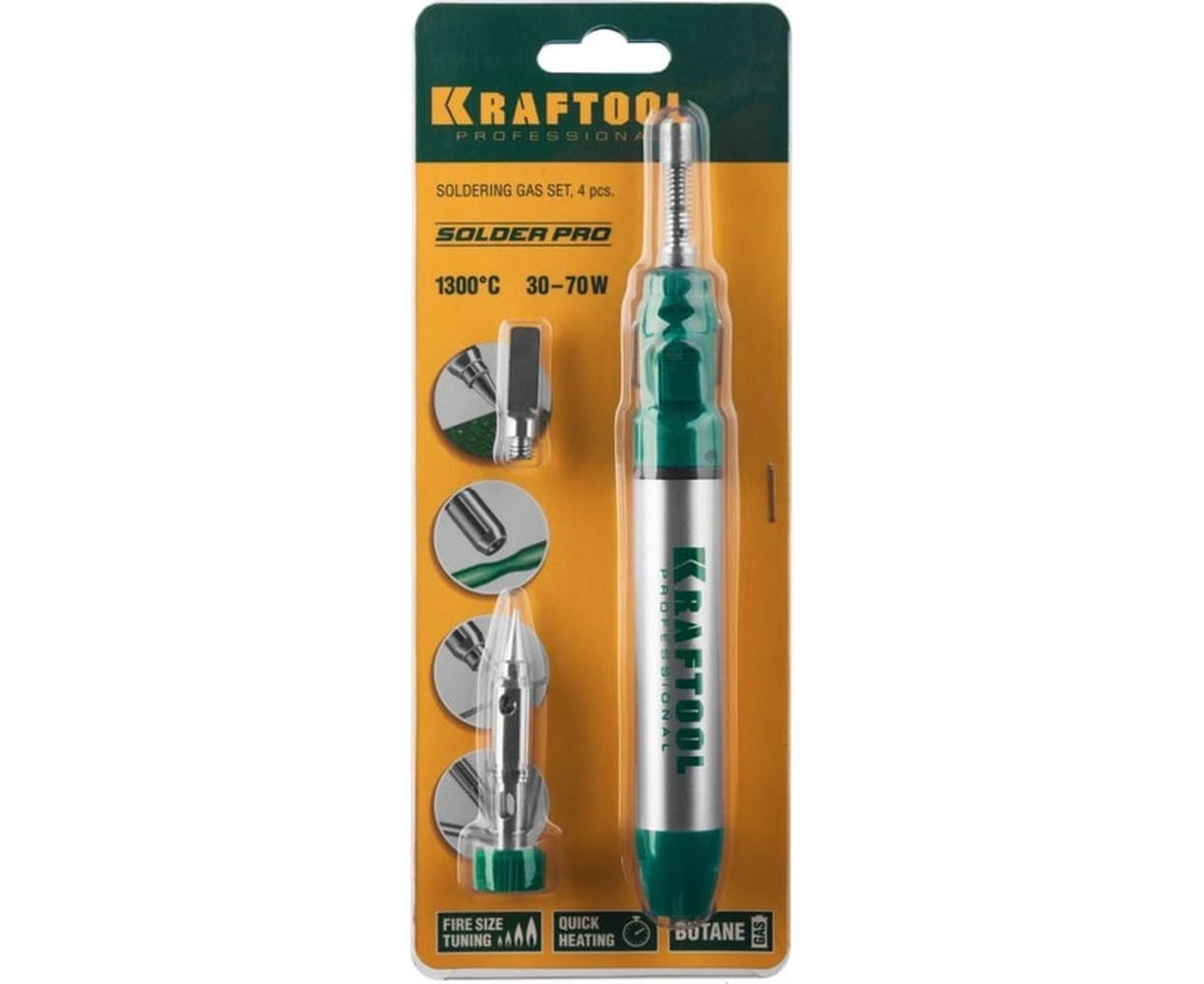 Газовый паяльник , 3в1, регулировка пламени KRAFTOOL 1300С 55504-H3 представляет собой профессиональный инструмент для точных работ с мелкими деталями.