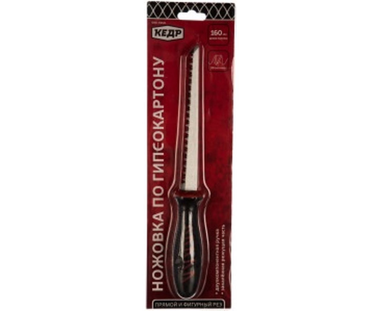 Ножовка по гипсокартону, 3D-заточка 160 мм КЕДР 086-0160 29099 имеет узкое лезвие со специальной заточкой зубьев. Инструмент оснащен острием для протыкания листов гипсокартона. Двухкомпонентная рукоятка не скользит в руках. Имеется упор для пальцев.